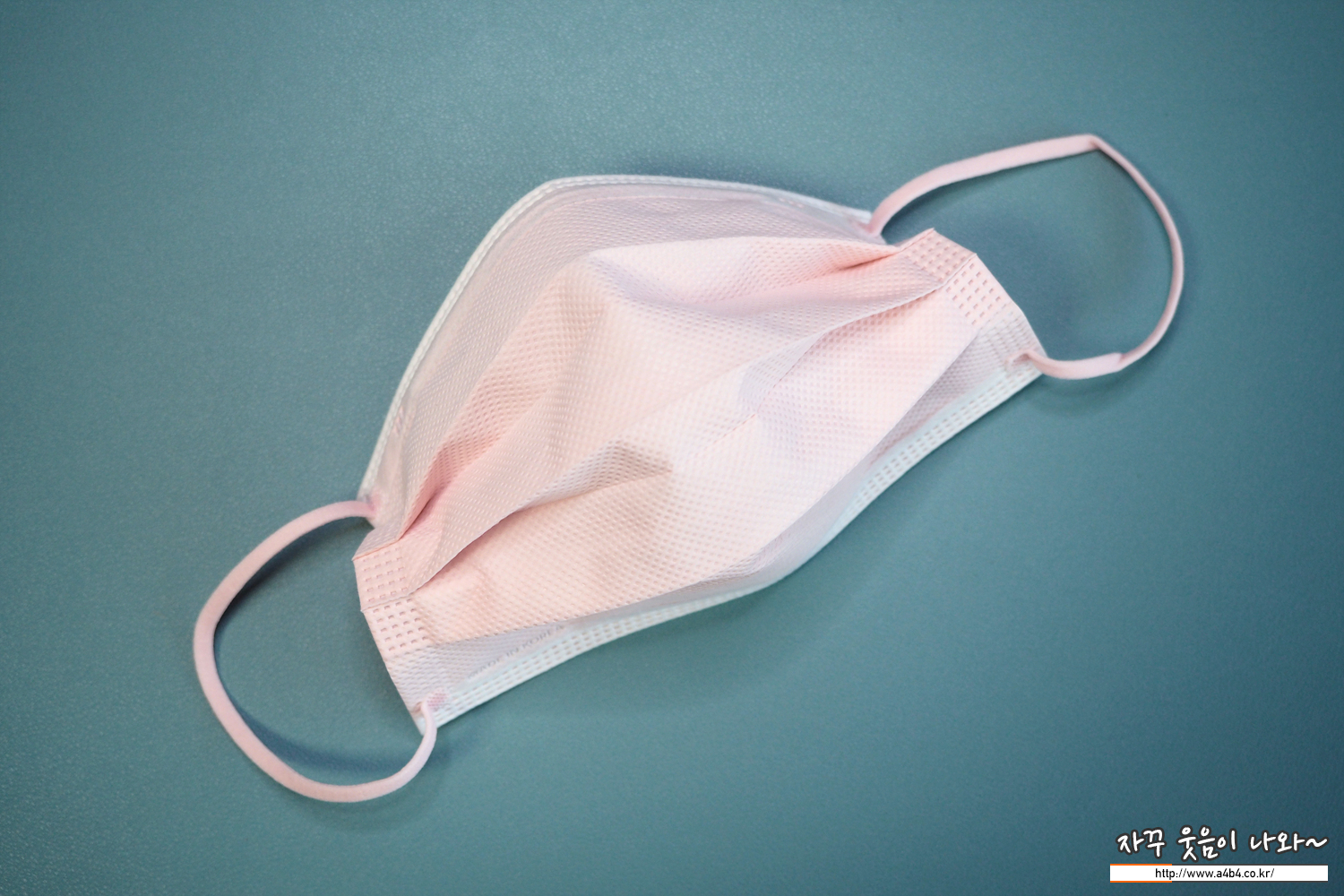 마스크 디자인은 병원에서 사용하는 덴탈마스크와 비슷한 디자인의 평판 마스크 모양을 보입니다. 세 개이 주름이 있는 타입으로 일반 덴탈마스크 보다는 조금 고급진 모양을 보입니다.