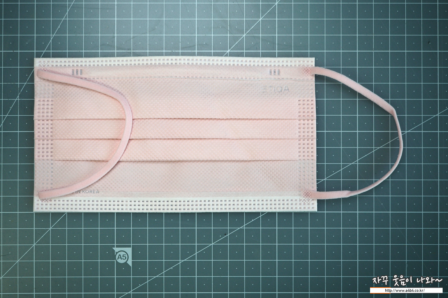 납작한 타입의 이어밴드가 마스크 전면에 부착되어 있으며, 이어밴드 탄력은 보통수준입니다. 고급형 마스크답게 귀에 편한 이어배드가 적용 되었습니다. 기존 에티카 보건용 마스크와 비슷한 부자재로 생각됩니다.