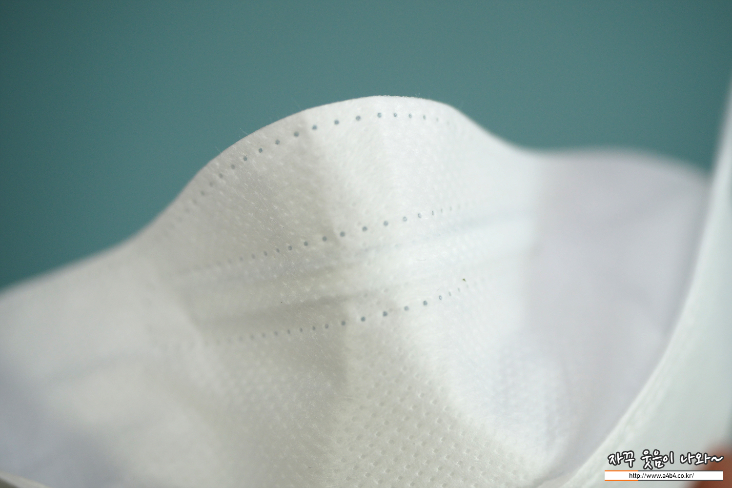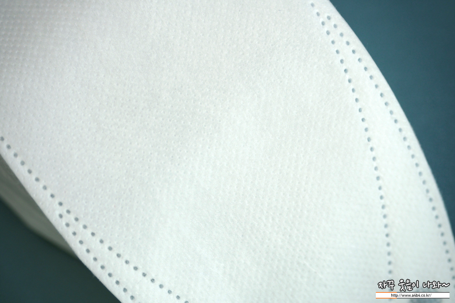 마이케어 KF80 마스크는 약한 도트처리된 매끈한 촉감의 부직포가 겉감으로 사용되었습니다. 4중 구조로 타사 제품보다는 약간 얇은 타입의 제품이며, 착용감 및 착용핏은 하드한 타입입니다.