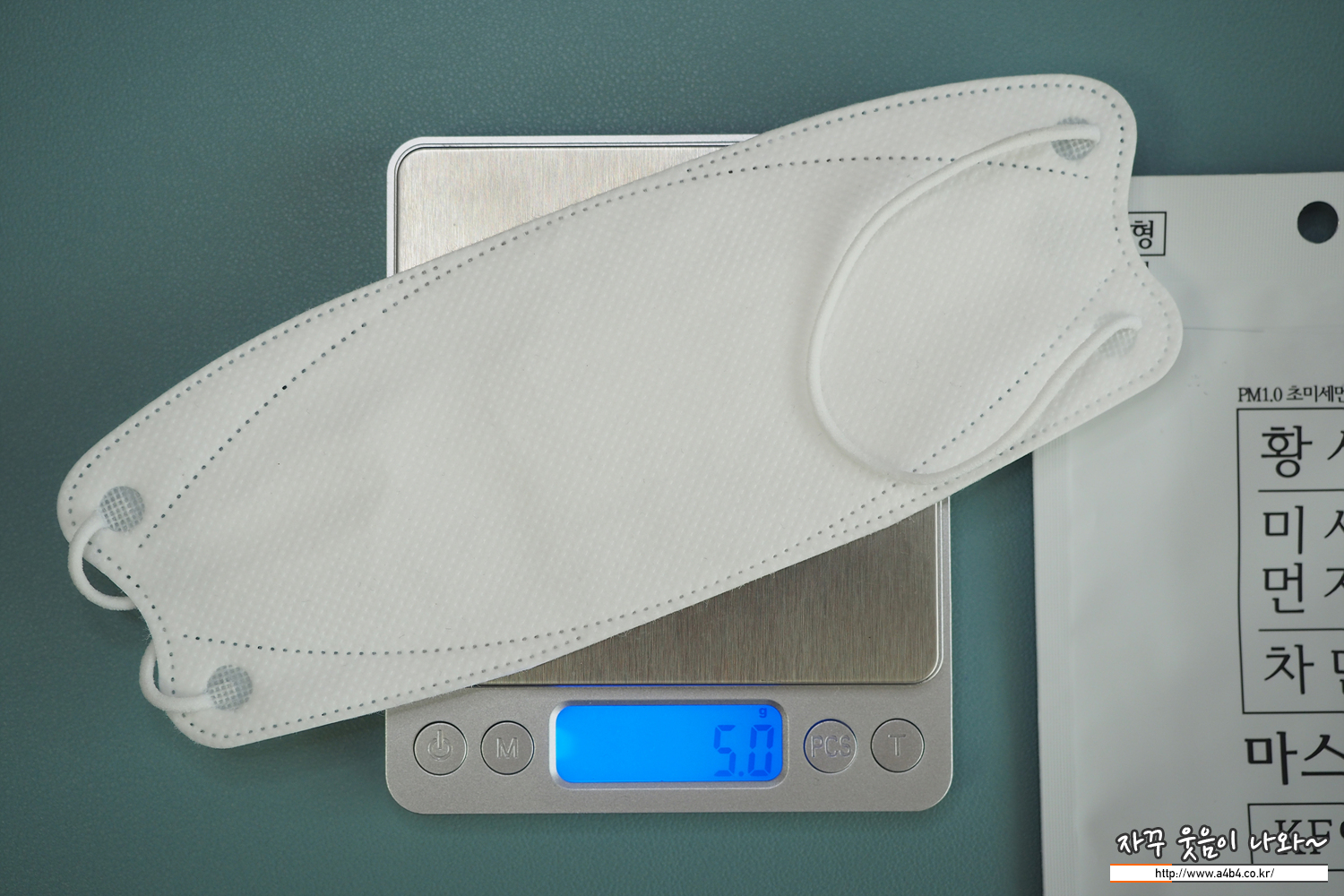 마이케어 KF80 마스크 대형 무게는 4.4그램으로 일반 KF80 대형 마스크 무게를 보입니다.