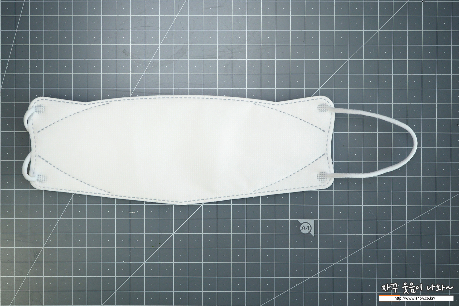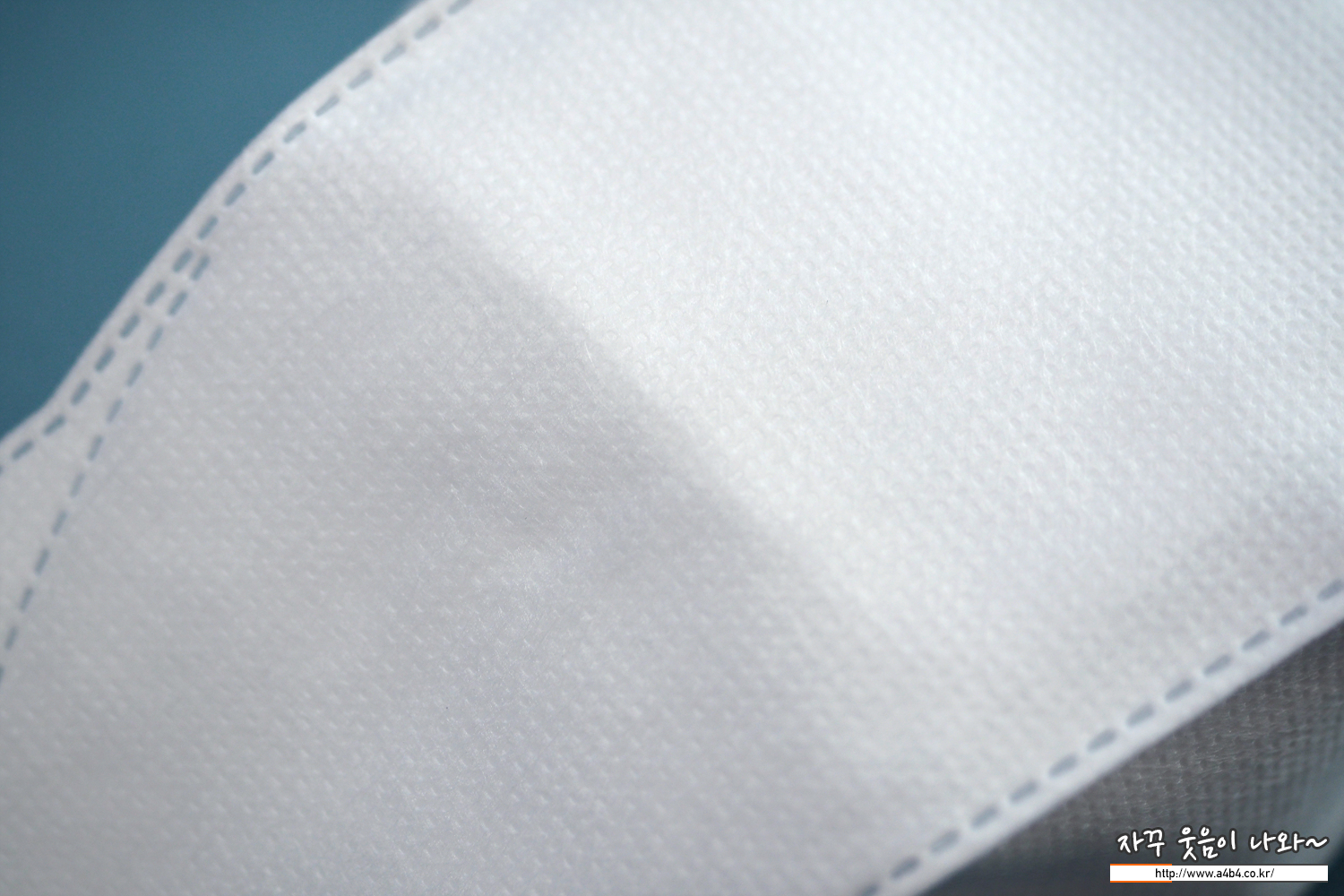 마스크 외피는 약한 도트 처리된 드라이한 촉감의 부직포가 사용되었습니다. 4중 필터구조로 두께가 조금 느껴지는 파입으로 하드한 착용감을 보입니다. 깔끔...