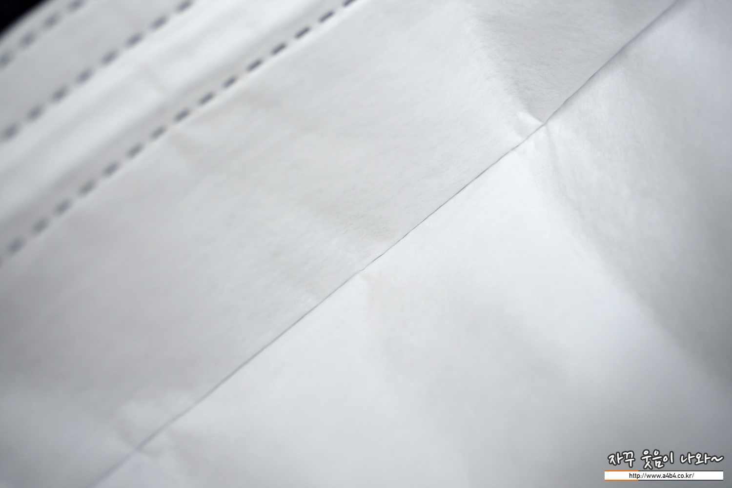 마스크 외피는 약한 도트 처리된 드라이한 촉감의 부직포가 사용되었습니다. 4중 필터구조로 두께가 조금 느껴지는 파입으로 하드한 착용감을 보입니다. 깔끔...