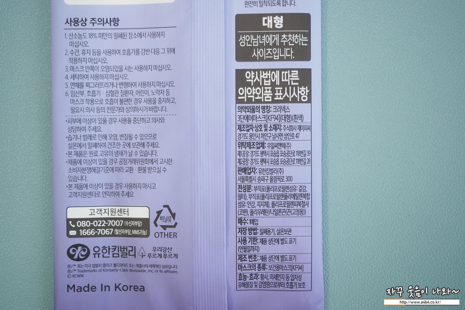 무엇보다도 크리넥스 에어마스크에 사용된 원부자재가 100% 국내산이 사용된 부분이 마음에 드네요.