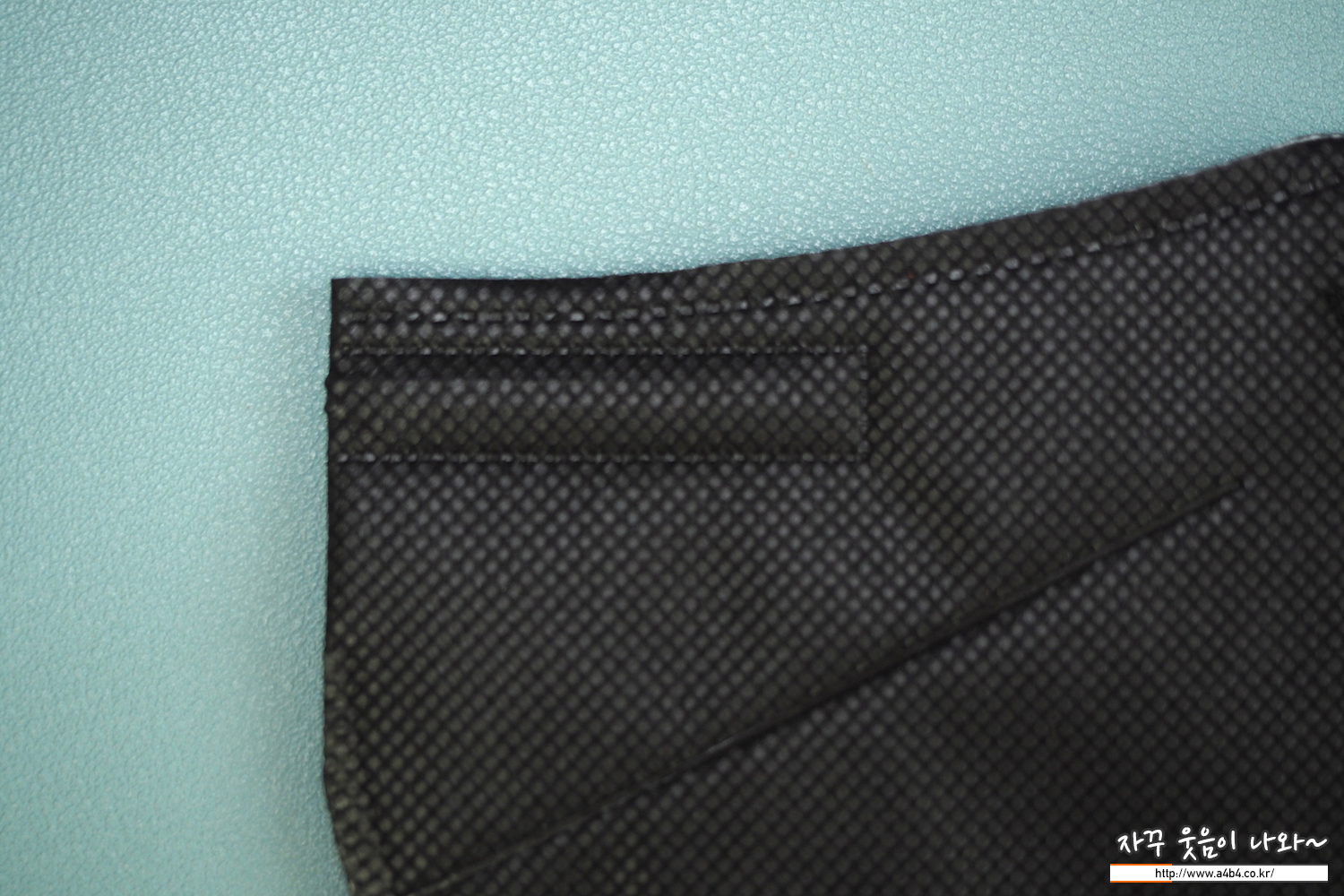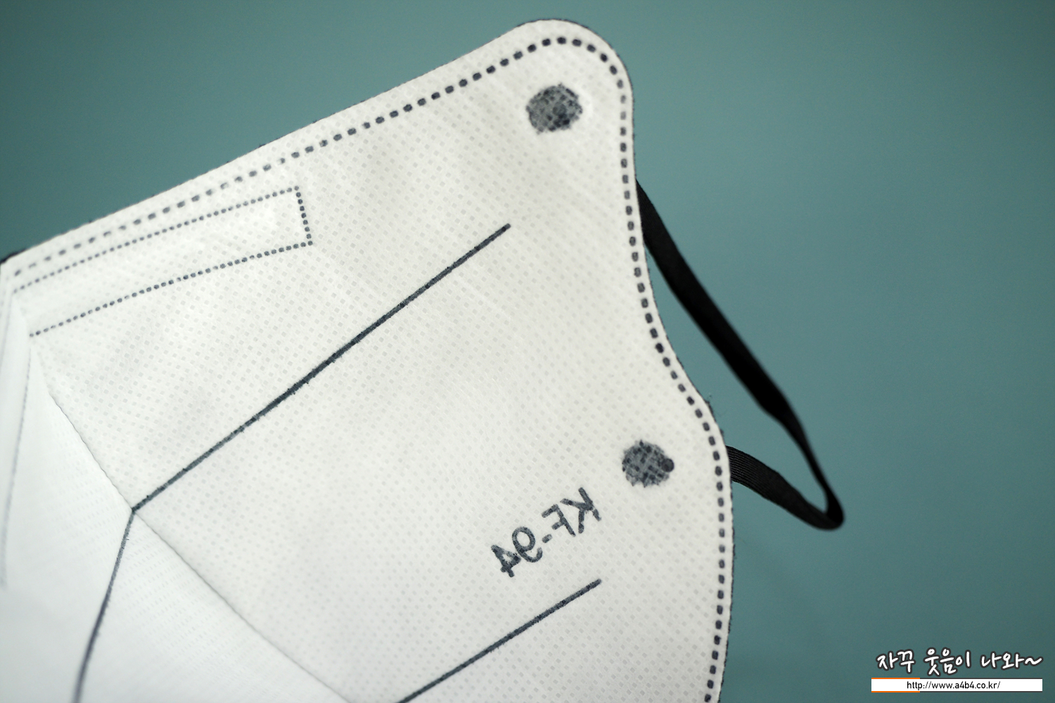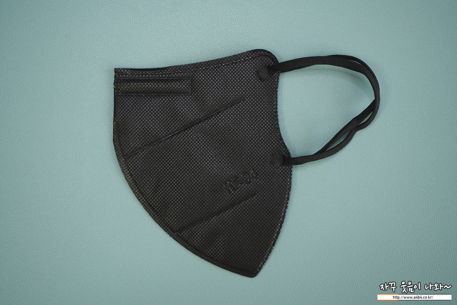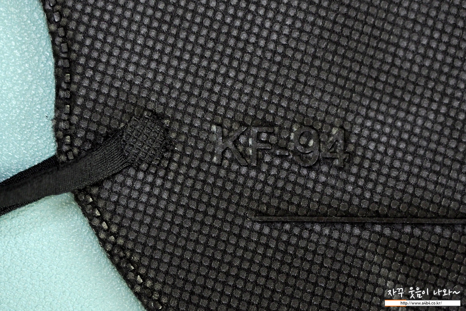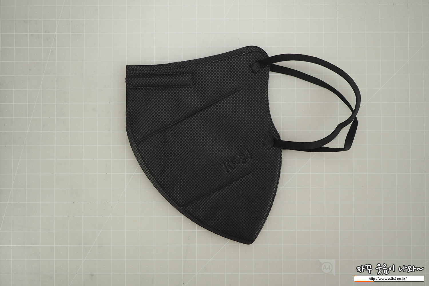 마스크 겉감은 매끈한 감촉의 검정색 부직포가 사용 되었습니다. 마스크는 다른 Kf94 블랙마스에 비해 조금 얇은 타입이지만 착용핏은 하드한 착용핏을 보입니다.