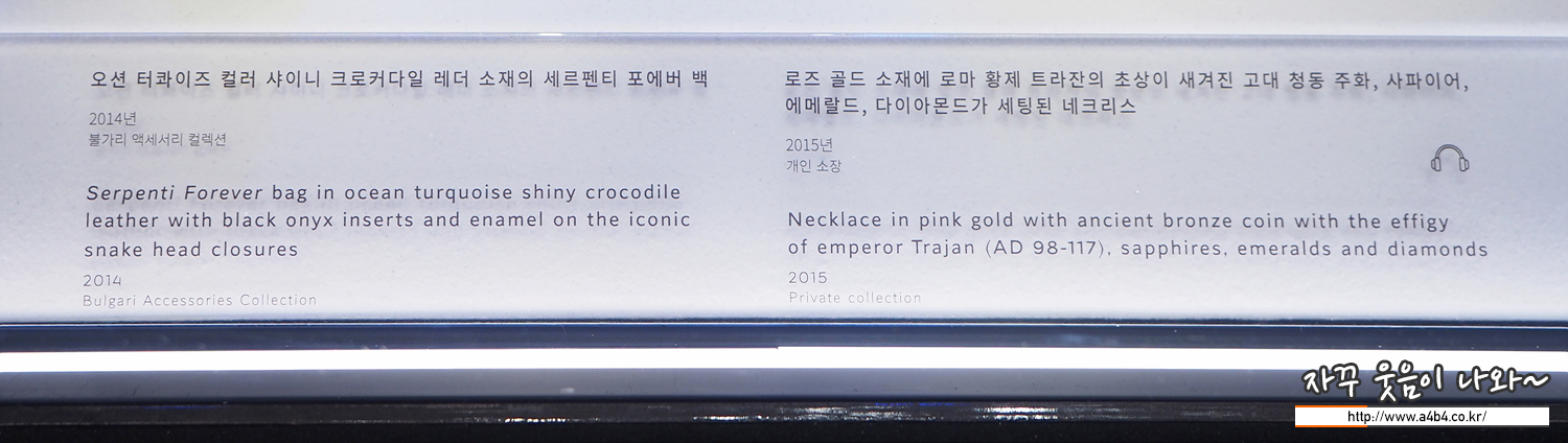 제3전시관에서는 현대 불가리 갤러리 불가리 대표 컬렉션이 전시되고 있습니다. 아쉽지만 사진으로...