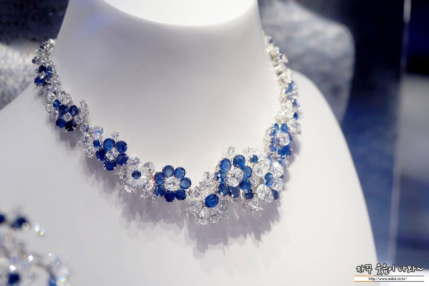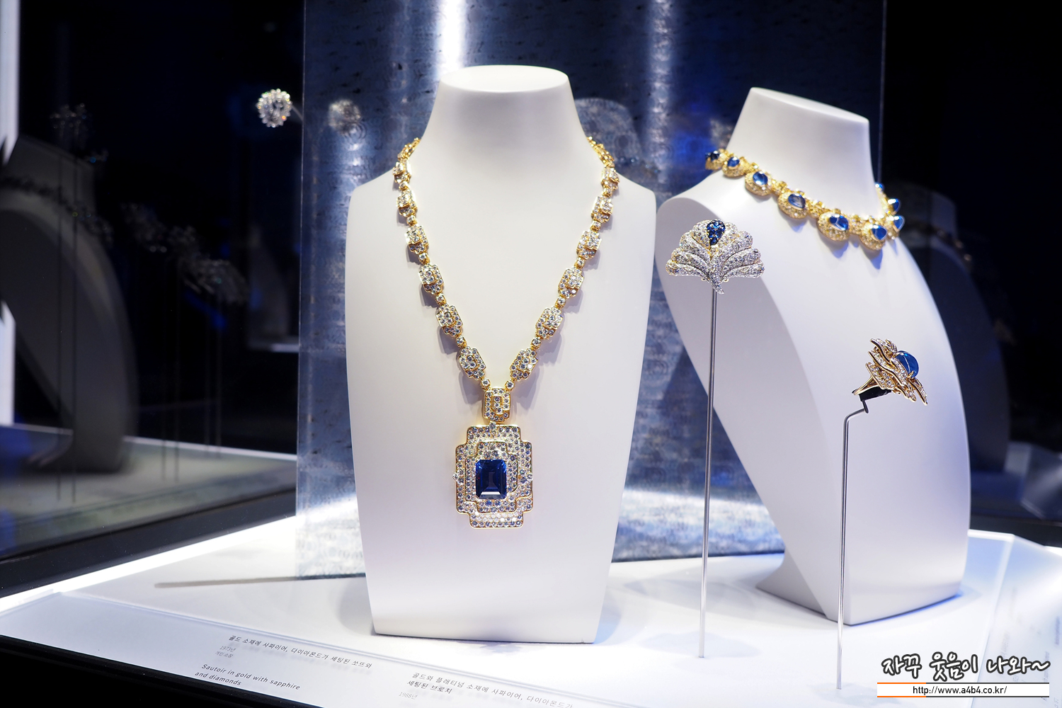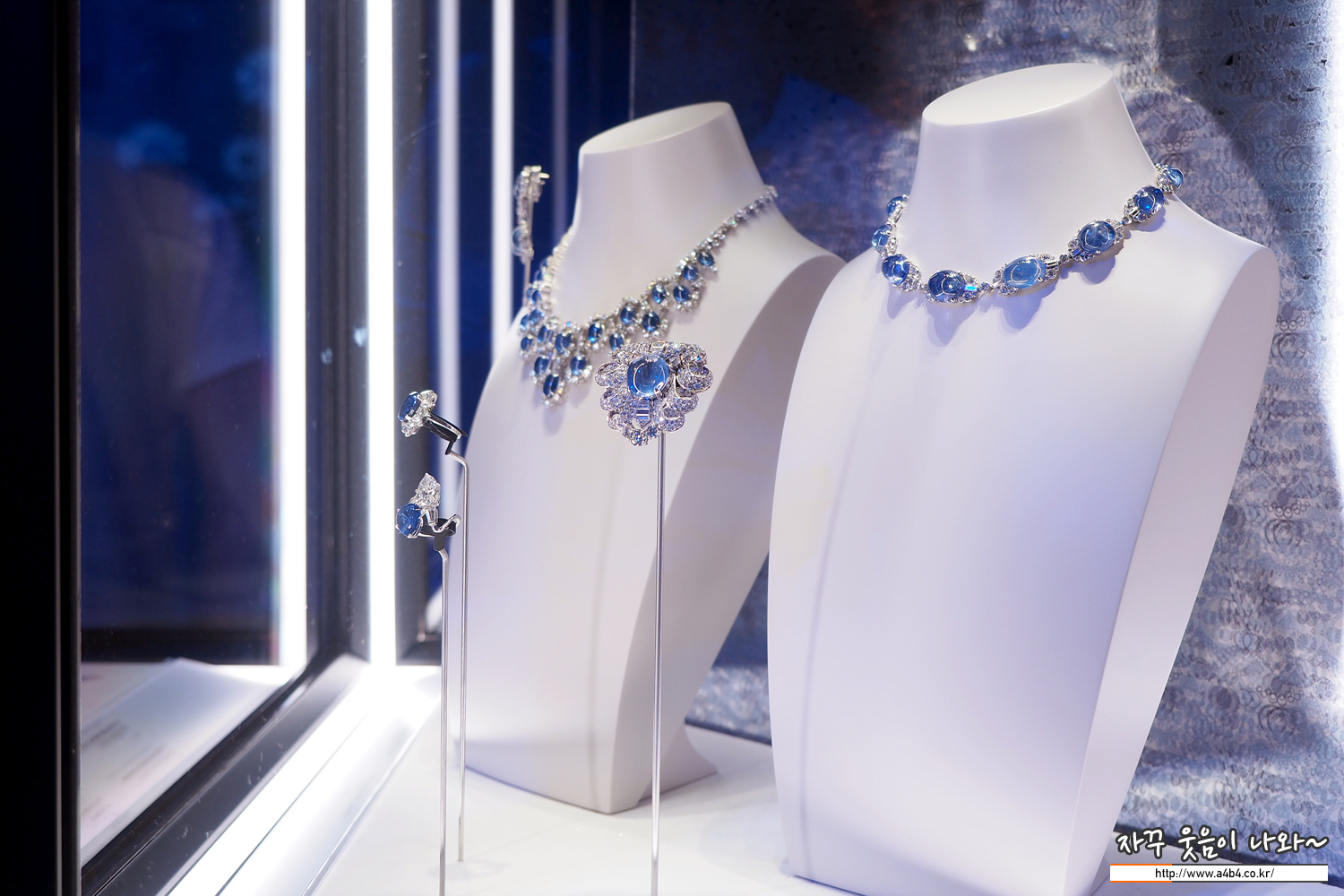 블루 사파이어와 다이아몬드, 플래티넘 소재의 작품들 루비가 열정이었다면, 이번 사파이어 블루는 깊고 시원한 느낌...