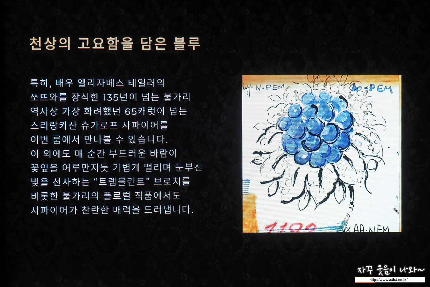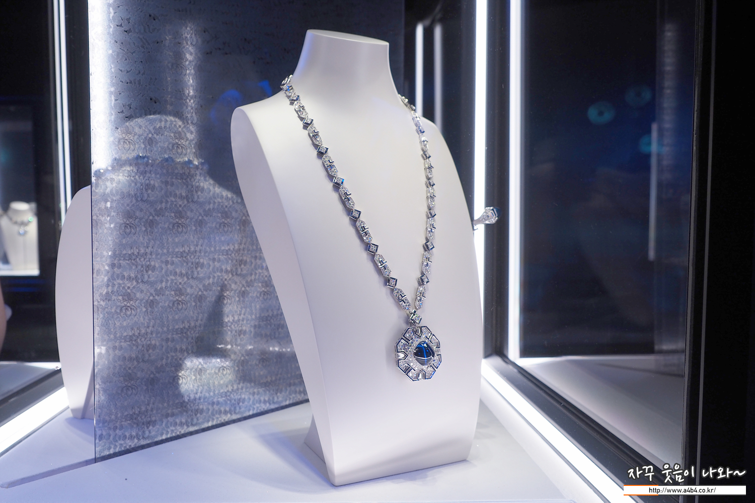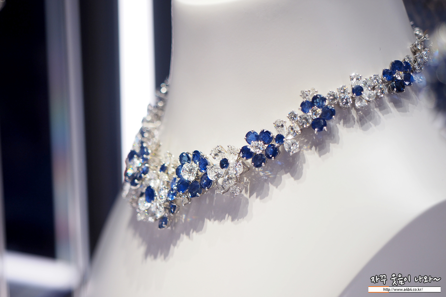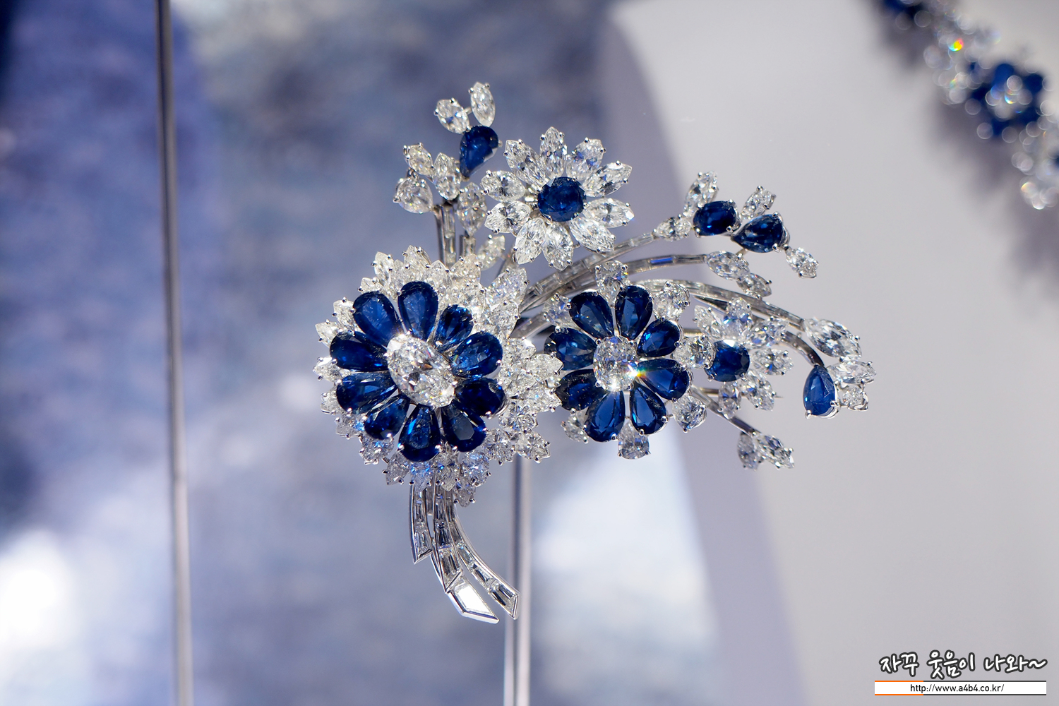 블루 사파이어와 다이아몬드, 플래티넘 소재의 작품들 루비가 열정이었다면, 이번 사파이어 블루는 깊고 시원한 느낌...