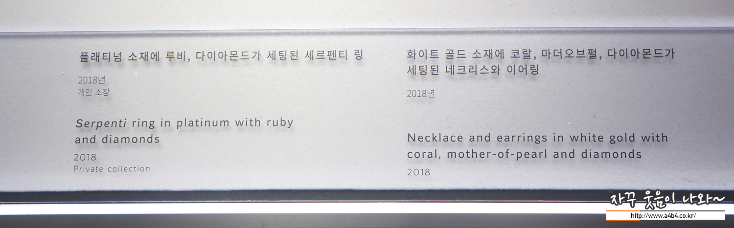 제3전시관에서는 현대 불가리 갤러리 불가리 대표 컬렉션이 전시되고 있습니다. 아쉽지만 사진으로...