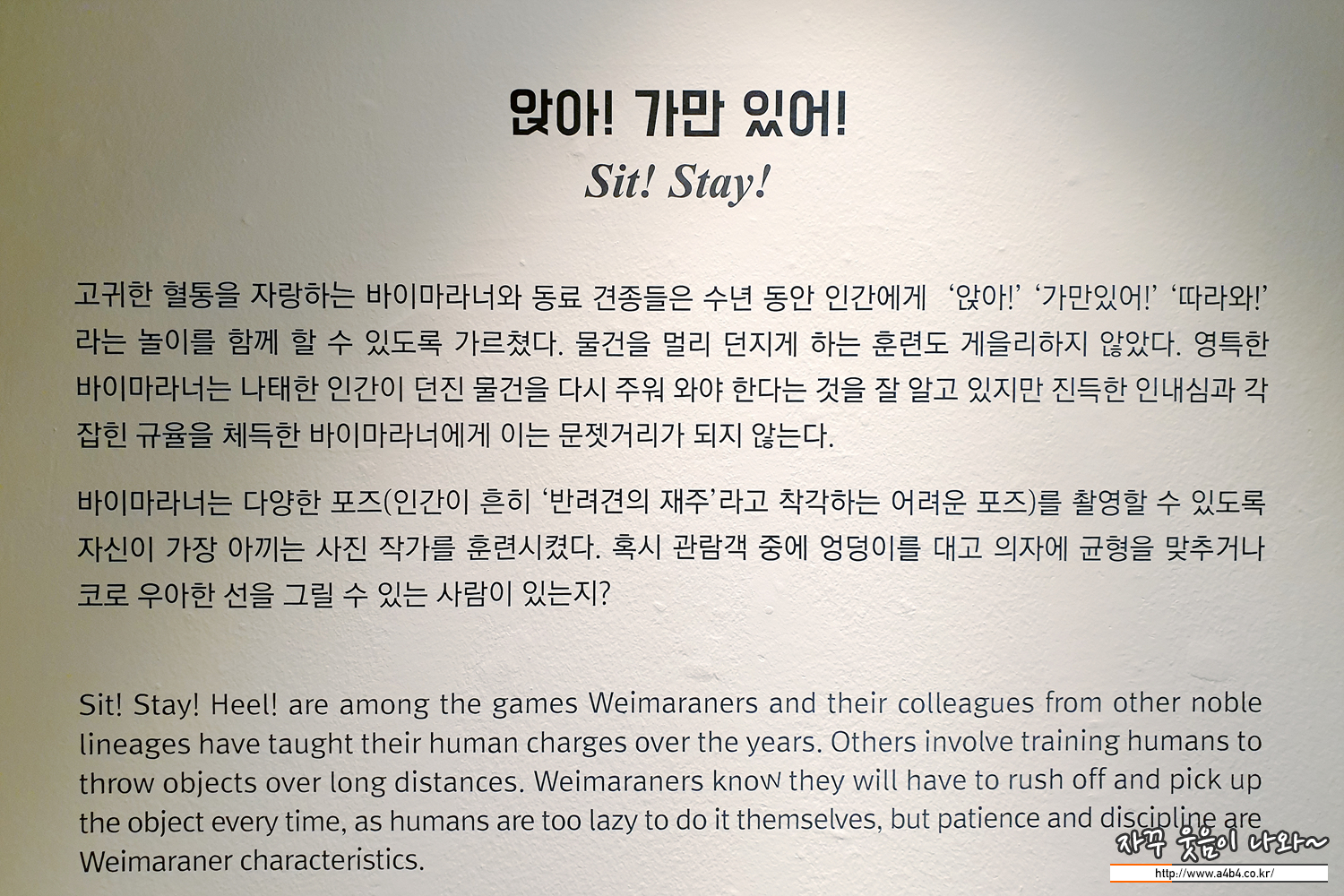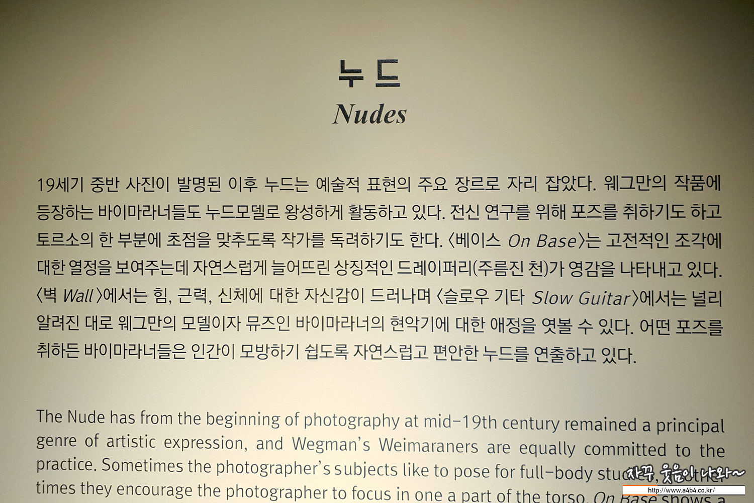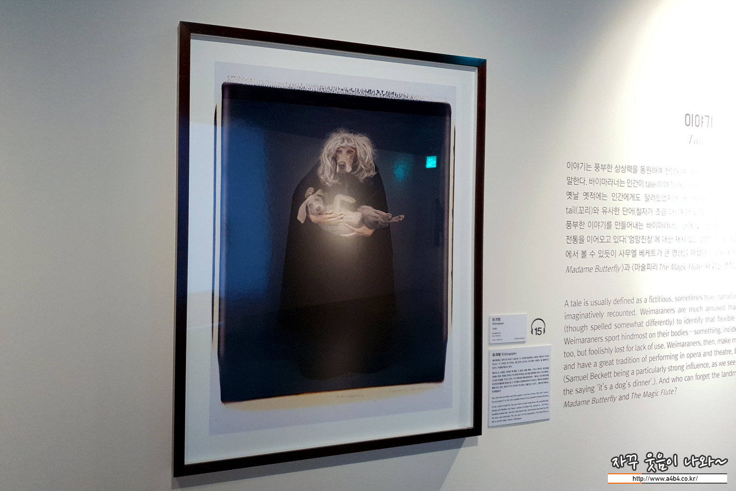 전시장 위치는 예술의 전당 비타민스테이션에 위치한 7전시실입니다. 티켓팅 후 입장하면 아래와 같이 이번 전시회 소개와 윌리엄 웨그만에 대한 소개로 시작됩니다.