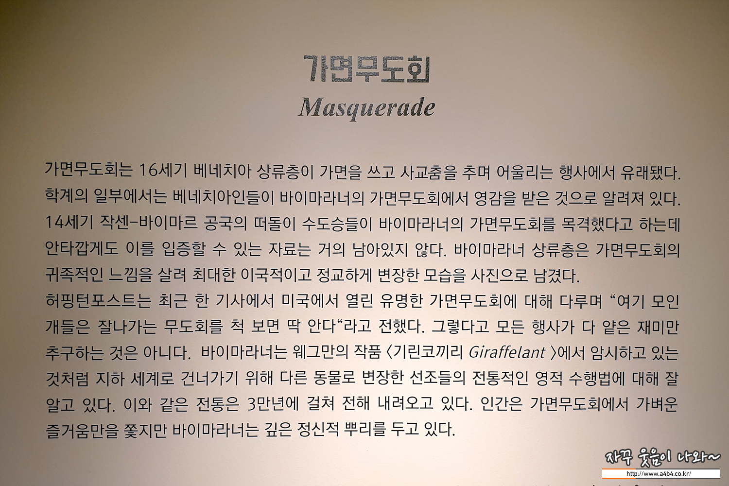 예술의 전당 한가람미술관 제7전시실에서 열리고 있는 이색 사진 전시회인 '윌리엄 웨그만'의 '비잉 휴먼' 전시회 방문후기입니다. 독특한 느낌의 이색 전시회로 동물과 사진을 좋아하는 분들에게는 좋은 관람 기회가 될 것으로 보입니다.