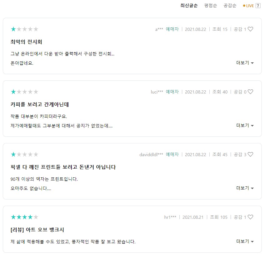 최근 방문/리뷰한 전시회 중에서 가장 낮은 평점을 주고 싶은 전시회입니다.