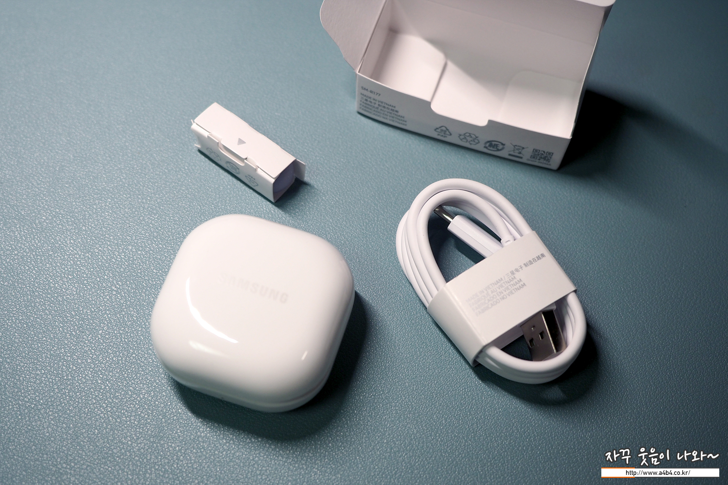 구성물은 단순합니다. 버즈 본체와 USB 케이블, 여분의 이어팁, 간단한 설명서로 구성되어 있습니다.