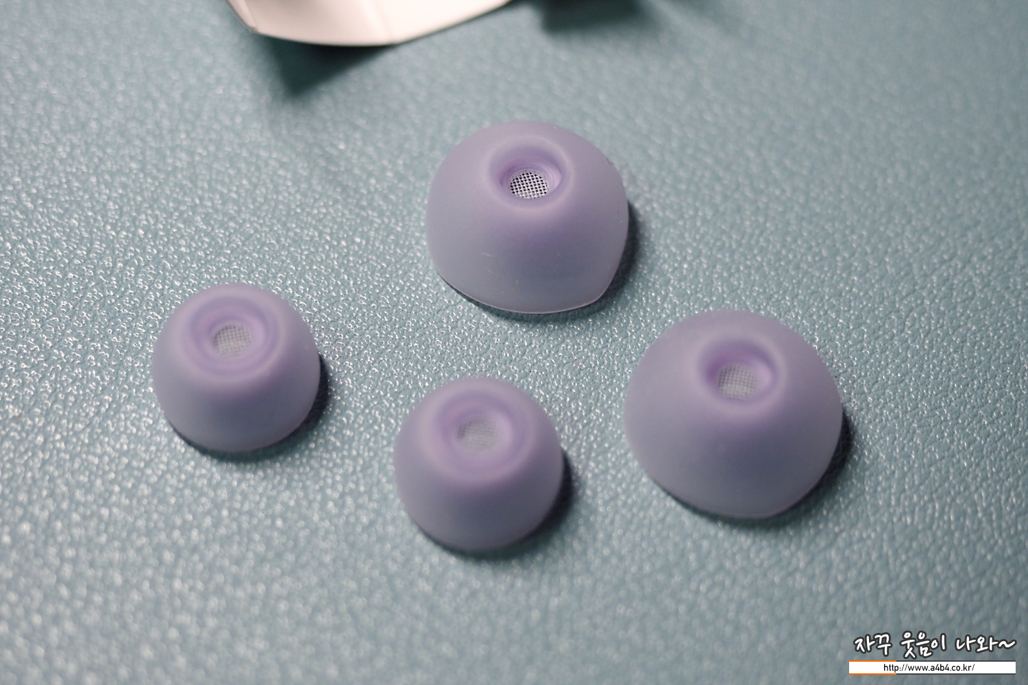갤럭시 버즈2 이어캡은 3쌍이 제공됩니다. L M S 사이즈 중형 사이즈는 버즈에 장착되어 있고요. 사진은 소형과 대형입니다.