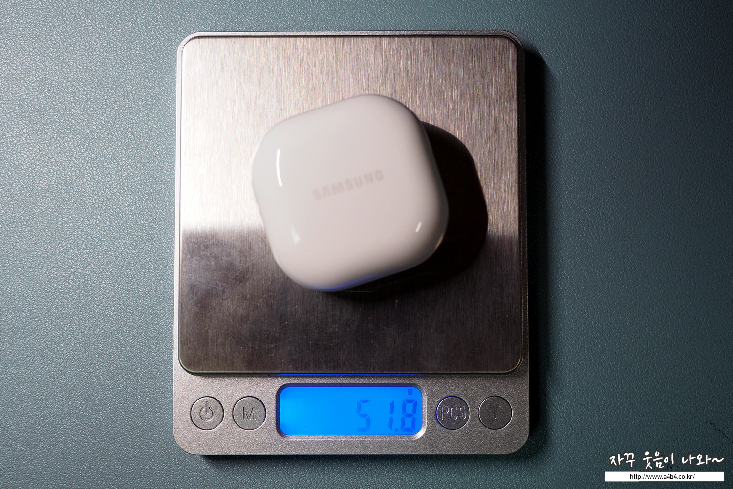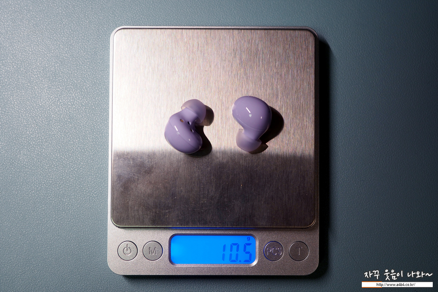 갤럭시 버즈2는 인이어 방식으로 이어캡 포함 10.5g 이라는 상당히 가벼운 무게를 보입니다. 에어팟 보다 약간 가벼운