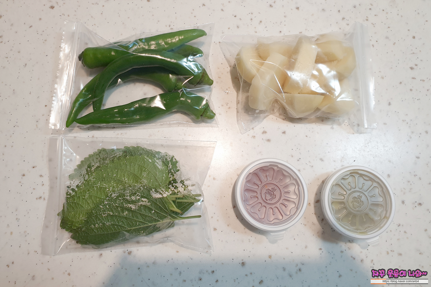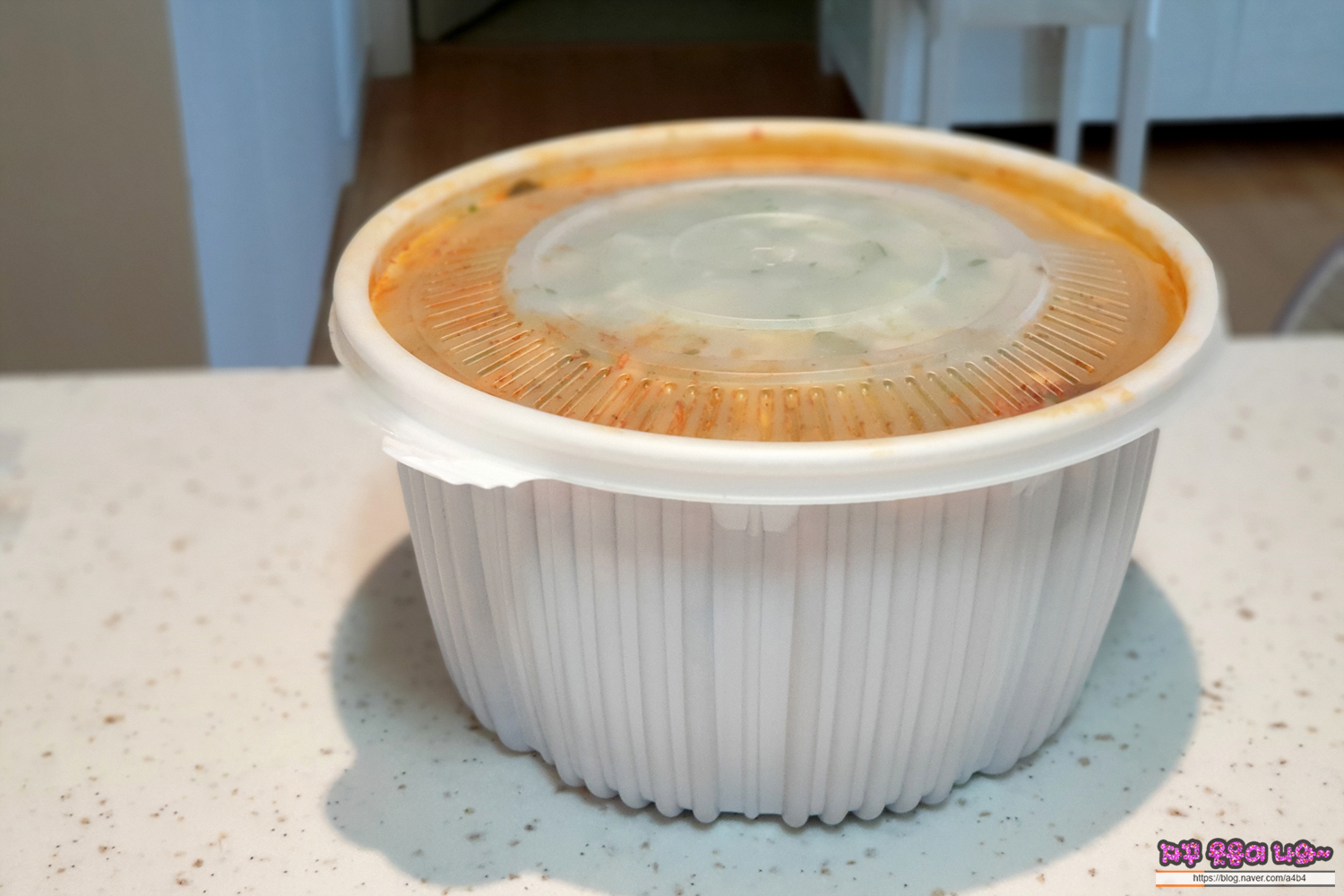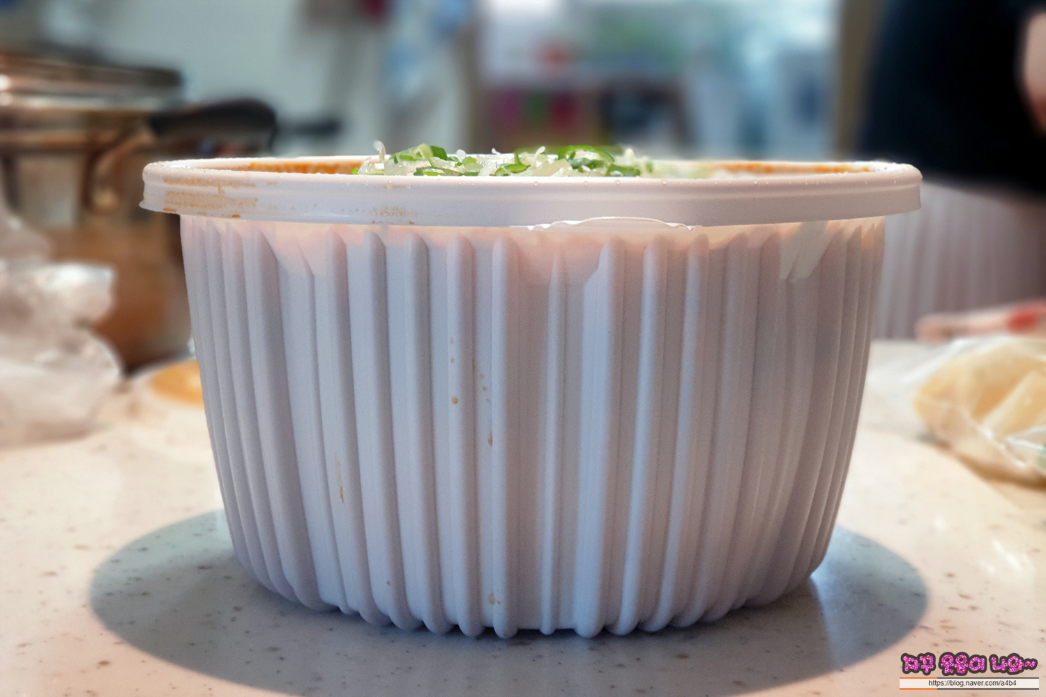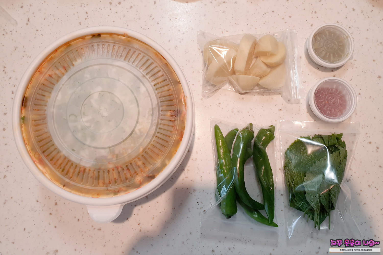 커다란 일회용 용기에 감자탕과 고추, 감자... 소스 등등 주심... 물론 포장에 밥은 없어요