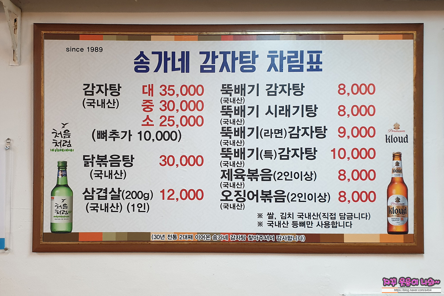 20년 전통 송가네 감차탕 인기 메뉴 및 가격