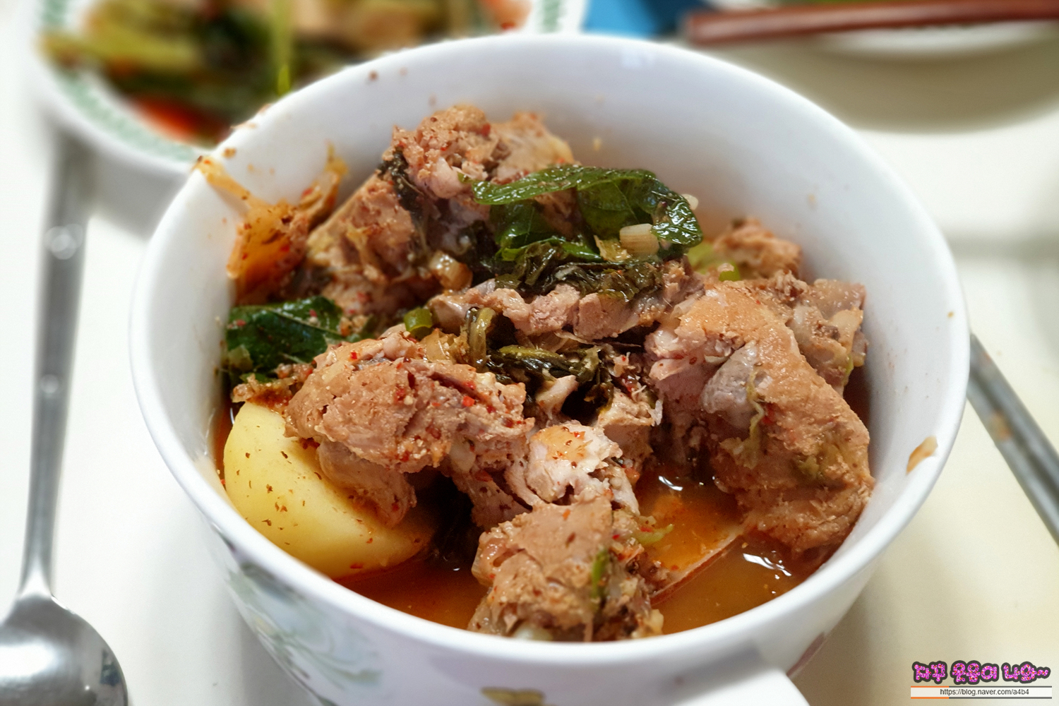 감자탕 중 사이즈는 3명이 먹기에 충분한 3인분이라고 말씀 주셨는데, 3명이 먹기에 넘치는 양이네요. 꾹꾹 담아 주신...