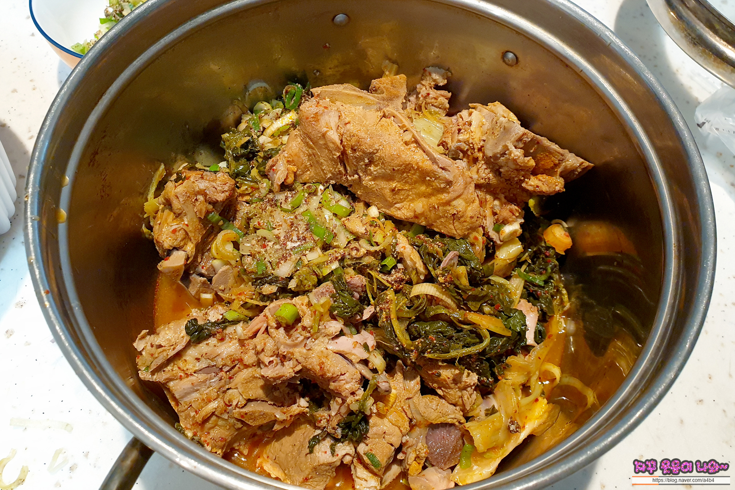 상당히 큰 냄비를 오랜만에 꺼냈습니다. 고기도 푸짐하고... 그냥 일반 냄비에 데웠다가는 넘치기 딱...