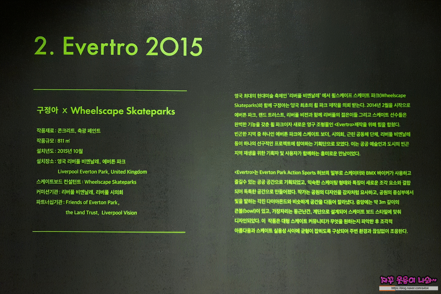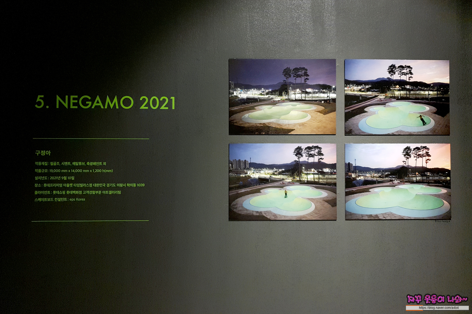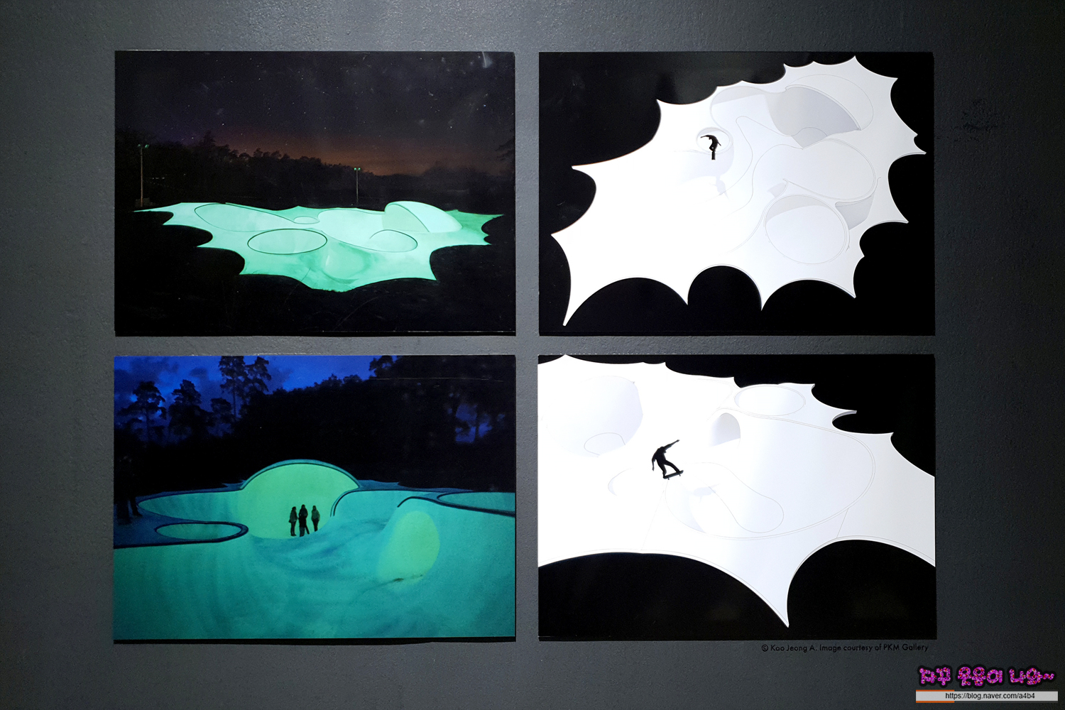 마지막 다섯번째 작품은 지난달에 오픈한 롯데프리미엄아울렛에 설치된 스케이트 파크에 대한 모형과 사진이 전시된 공간입니다. 지금은 교통지옥이라고 하는데 조금 잠잠해지면 보드 가지고 가보려고 합니다.