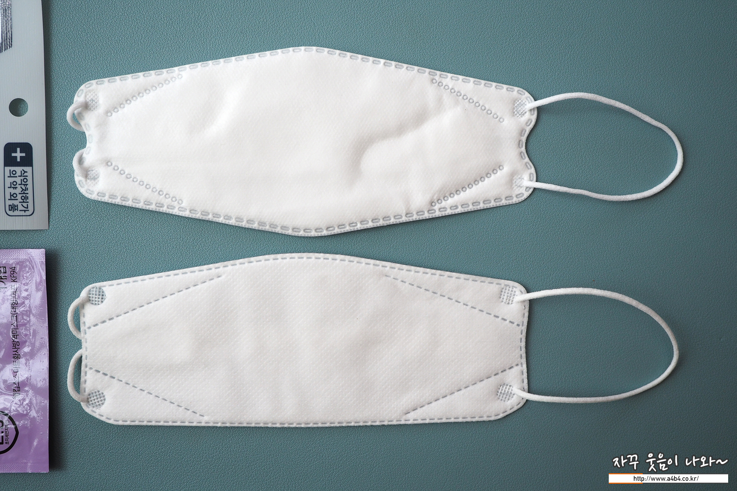 KF94 나록스 마스크 내피는 보드러운 감촉의 부직포가 사용되었습니다. 내피에 보푸라기가 조금 보이는데 착용에 문제점은 생기지 않습니다. 피부 트러블도 없으며, 약품 냄새도 없습니다.