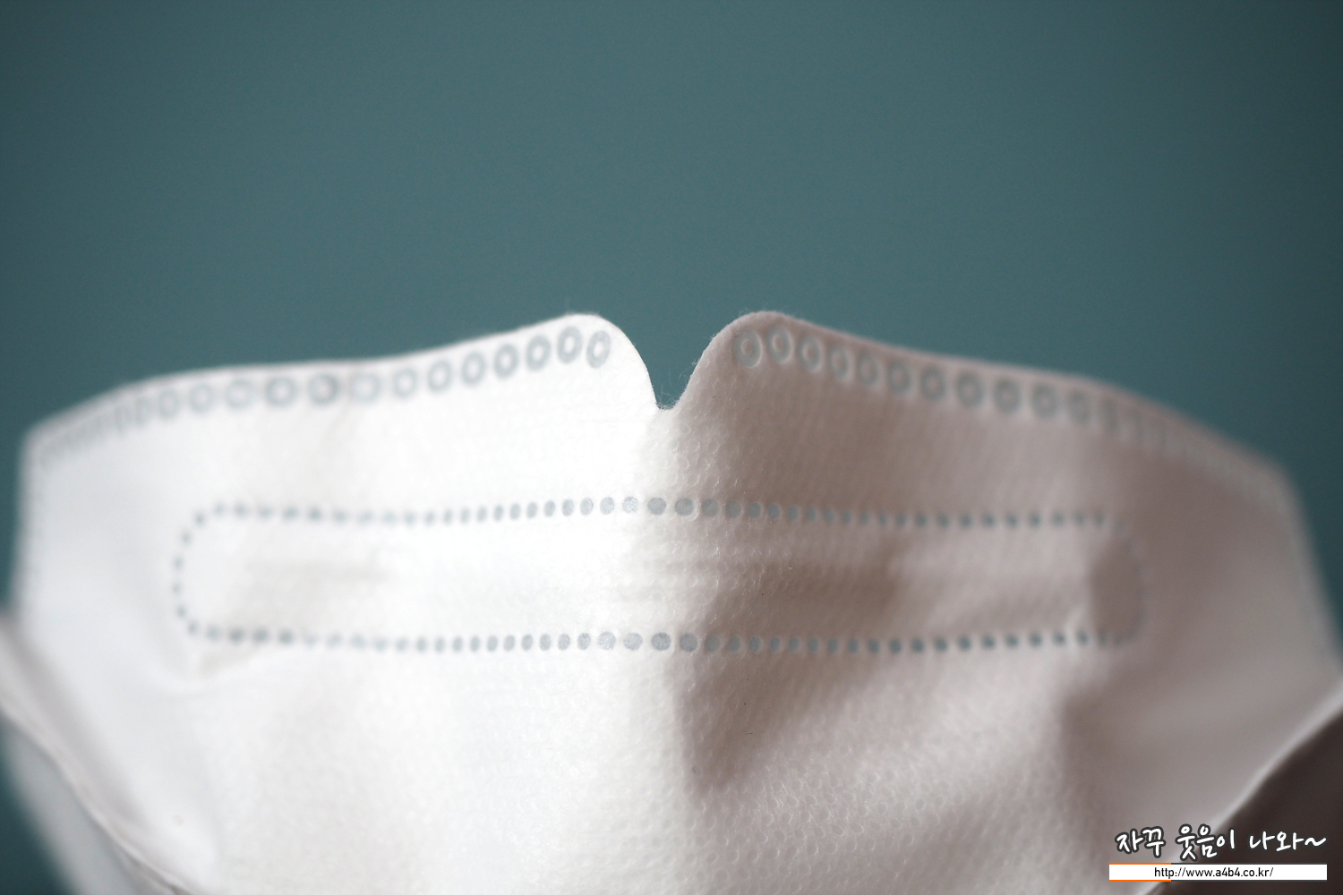 KF94 나록스 마스크 내피는 보드러운 감촉의 부직포가 사용되었습니다. 내피에 보푸라기가 조금 보이는데 착용에 문제점은 생기지 않습니다. 피부 트러블도 없으며, 약품 냄새도 없습니다.