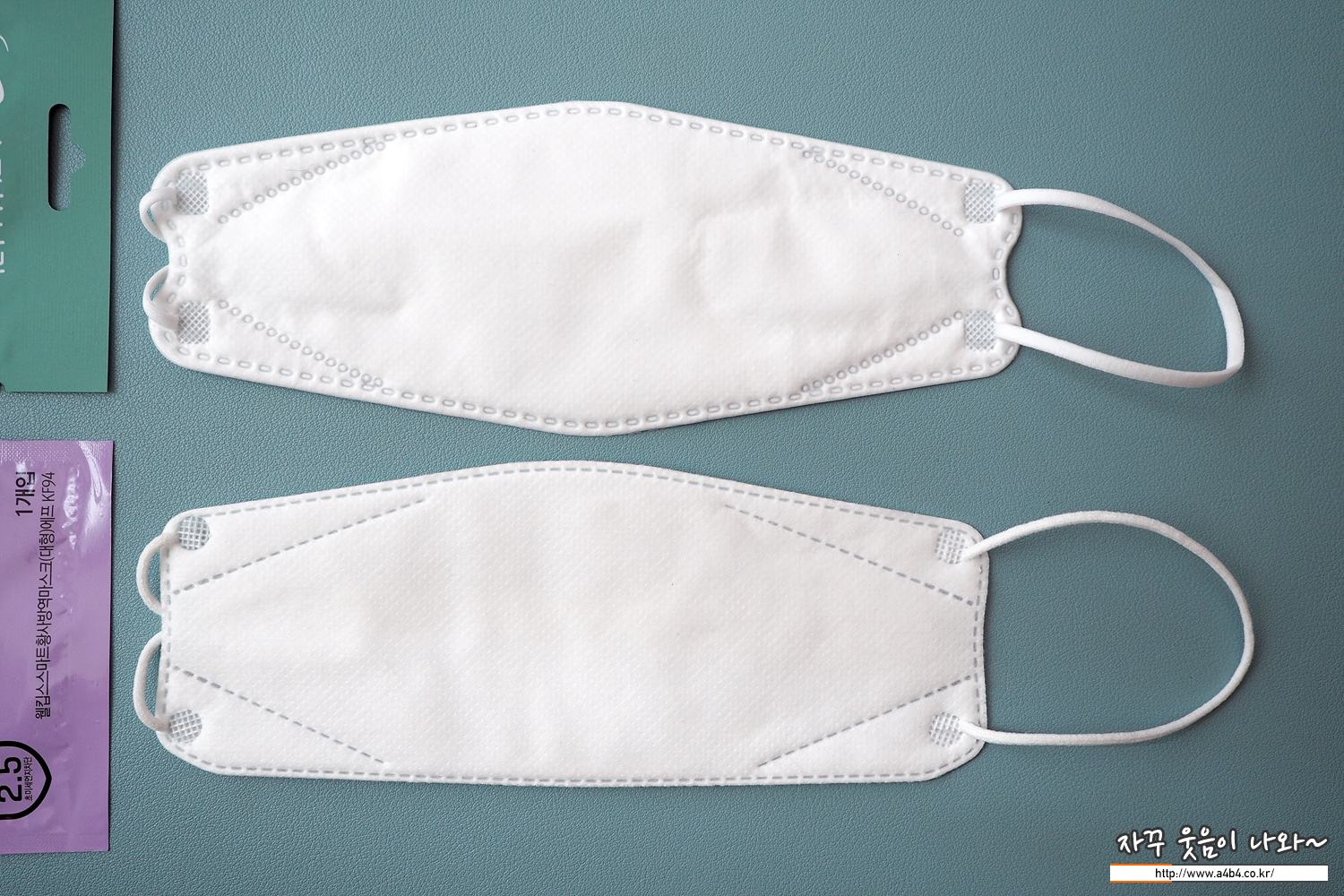 KF94 숨편한나라 마스크는 약한 도트 처리된 제품으로 일반적인 두께감과 소프트한 착용감을 보입니다. 각이 딱 잡히는 착용핏은 어렵네요. 그래도 무난한 수준의 착용핏과 착용감을 보입니다.