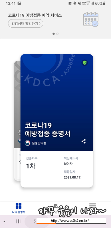 지난달 중순 화이자 백신 1차 접종 후 6주만에 화이자 백신 2차접종 완료 했네요. 1차 접종 후 4주 에상했는데 백신 수급 문제로 딱 6주 만에 접송하게 되었다는...