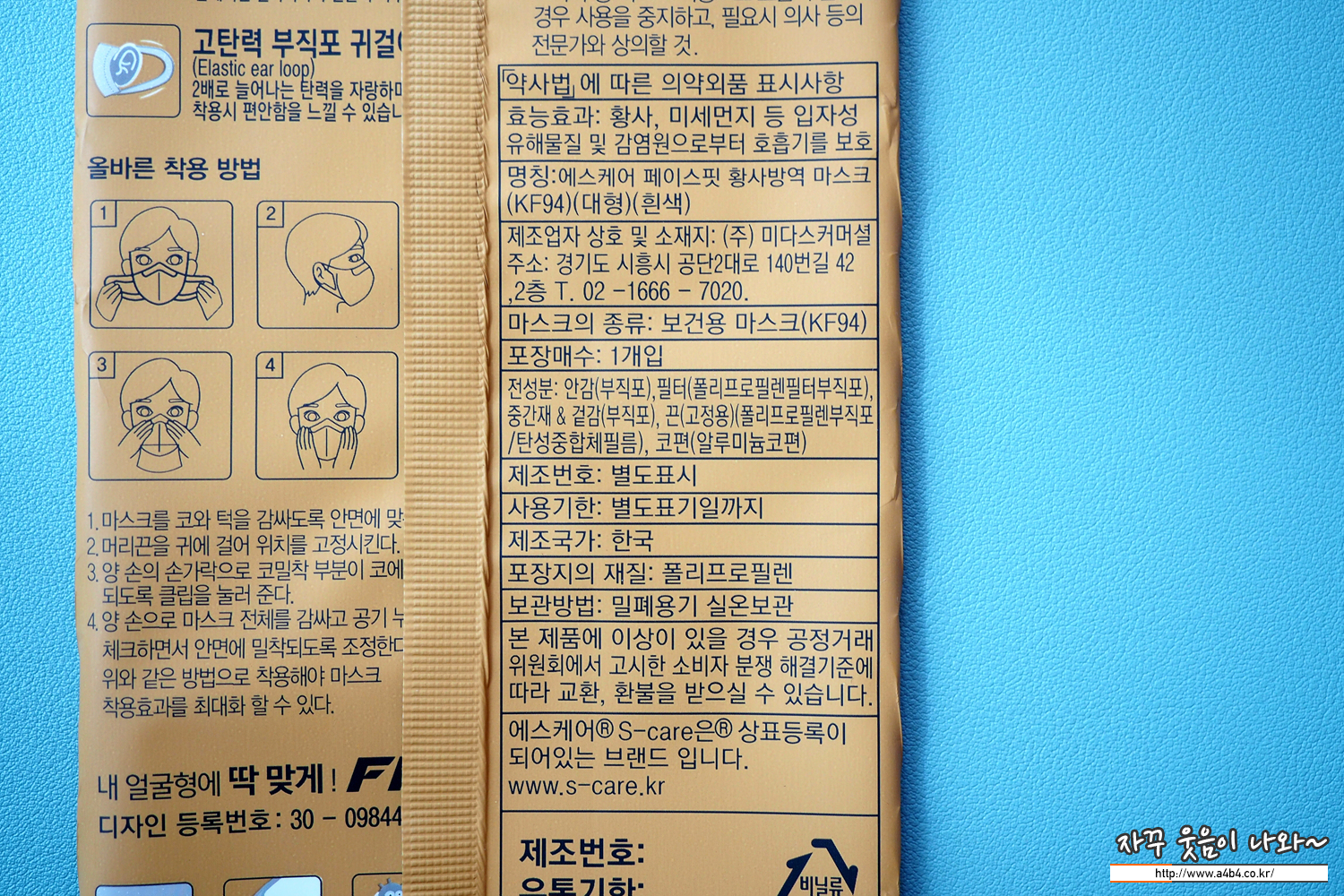 식약처 의약품안전나라 제품명칭의 '에스케어페이스핏황사방역마스크 KF94'입니다. 오늘은 대형사이즈 흰색 제품으로 리뷰 진행합니다. 올해인 21년 3월에 허가된 마스크로 제조원은 (주)미다스커머셜로 등록되어 있습니다.