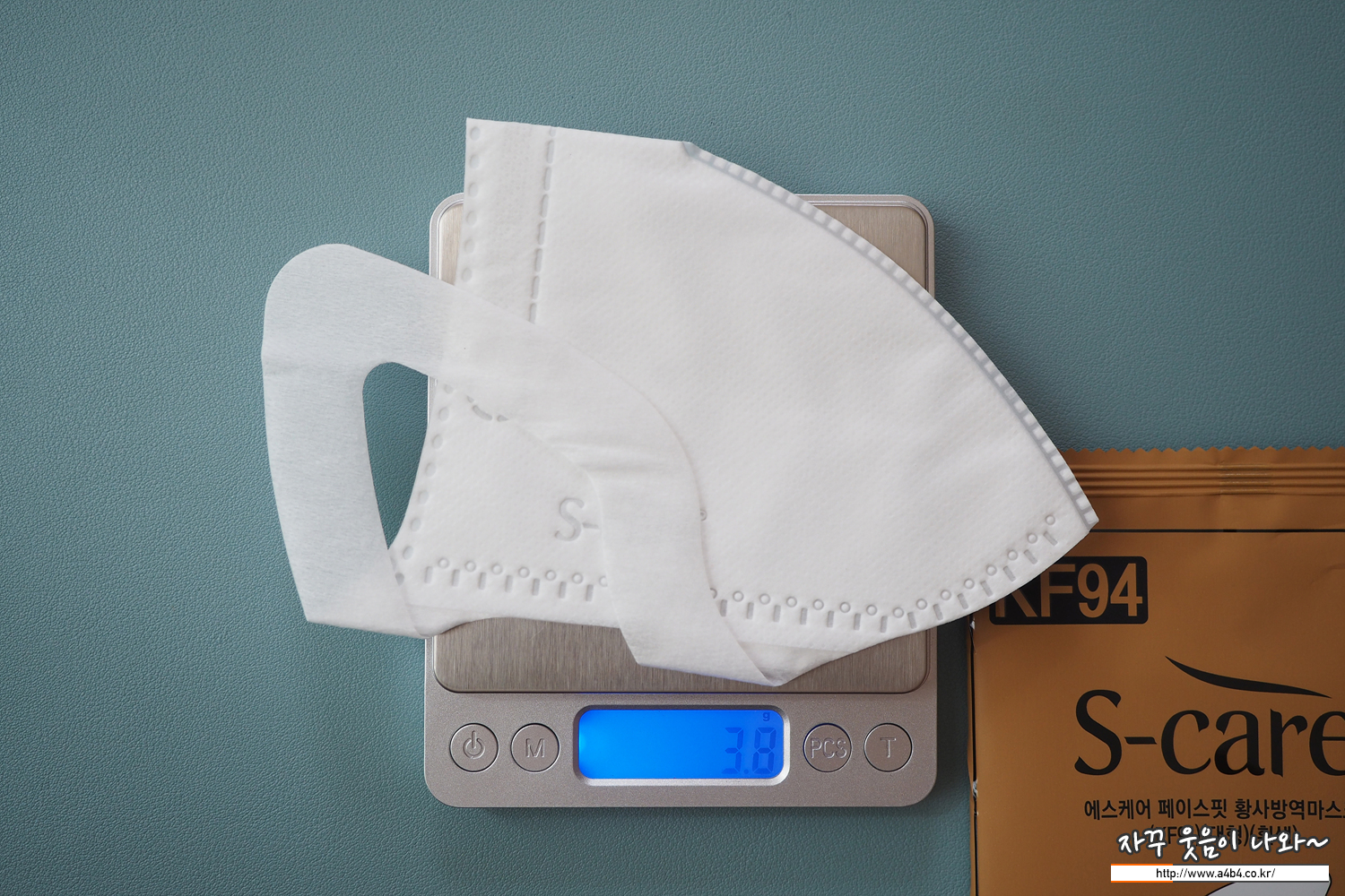 에스케어 KF94 마스크 대형 중량은 3.8g으로 타사 새부리형 마스크에 비해서는 가벼운 중량을 보여주고 있습니다.