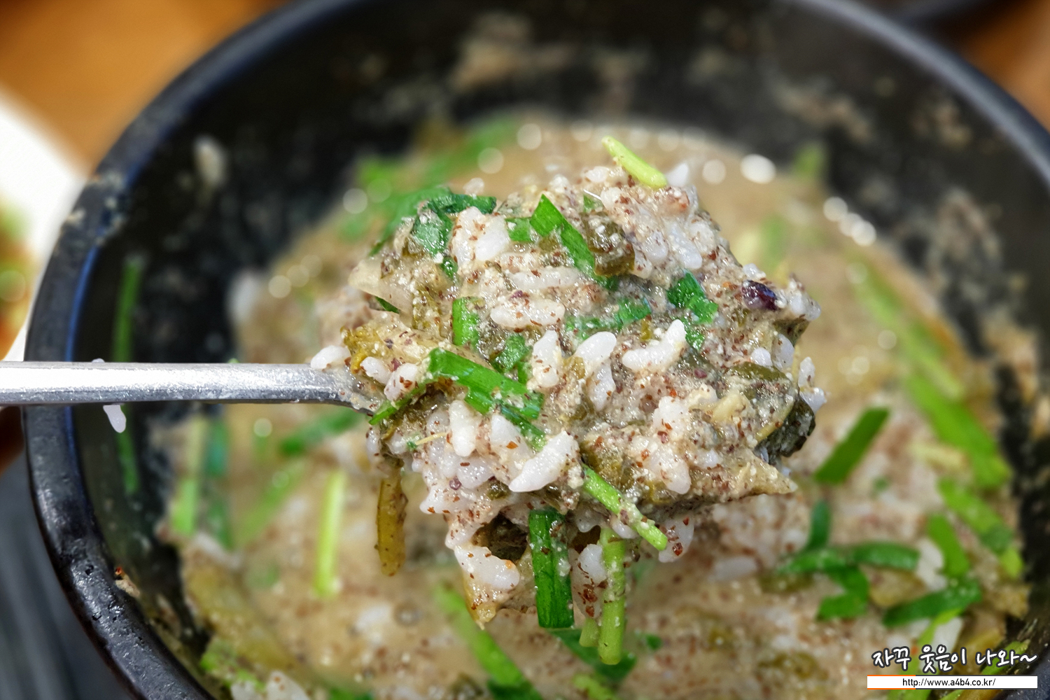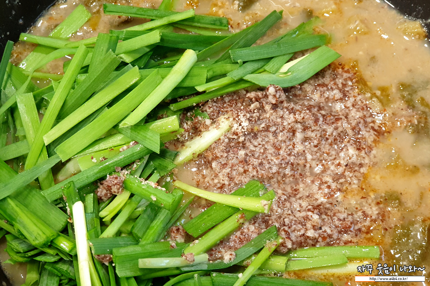 추어탕에 빠질 수 없는 들깨와 부추... 듬쁙 넣습니다.