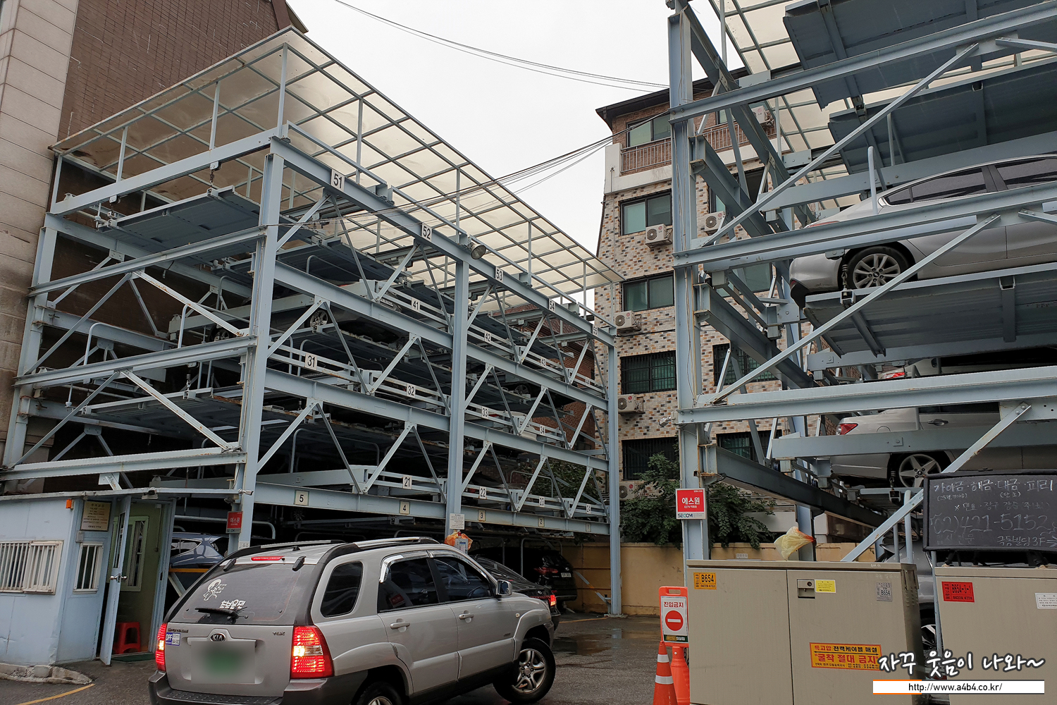 건물 왼쪽으로 아래 사진과 같은 타워 주차장이 있습니다. 대리 주차해 주시고. 한 시간은 주차요금 무료입니다. 별도의 발렛비용도 없네요.