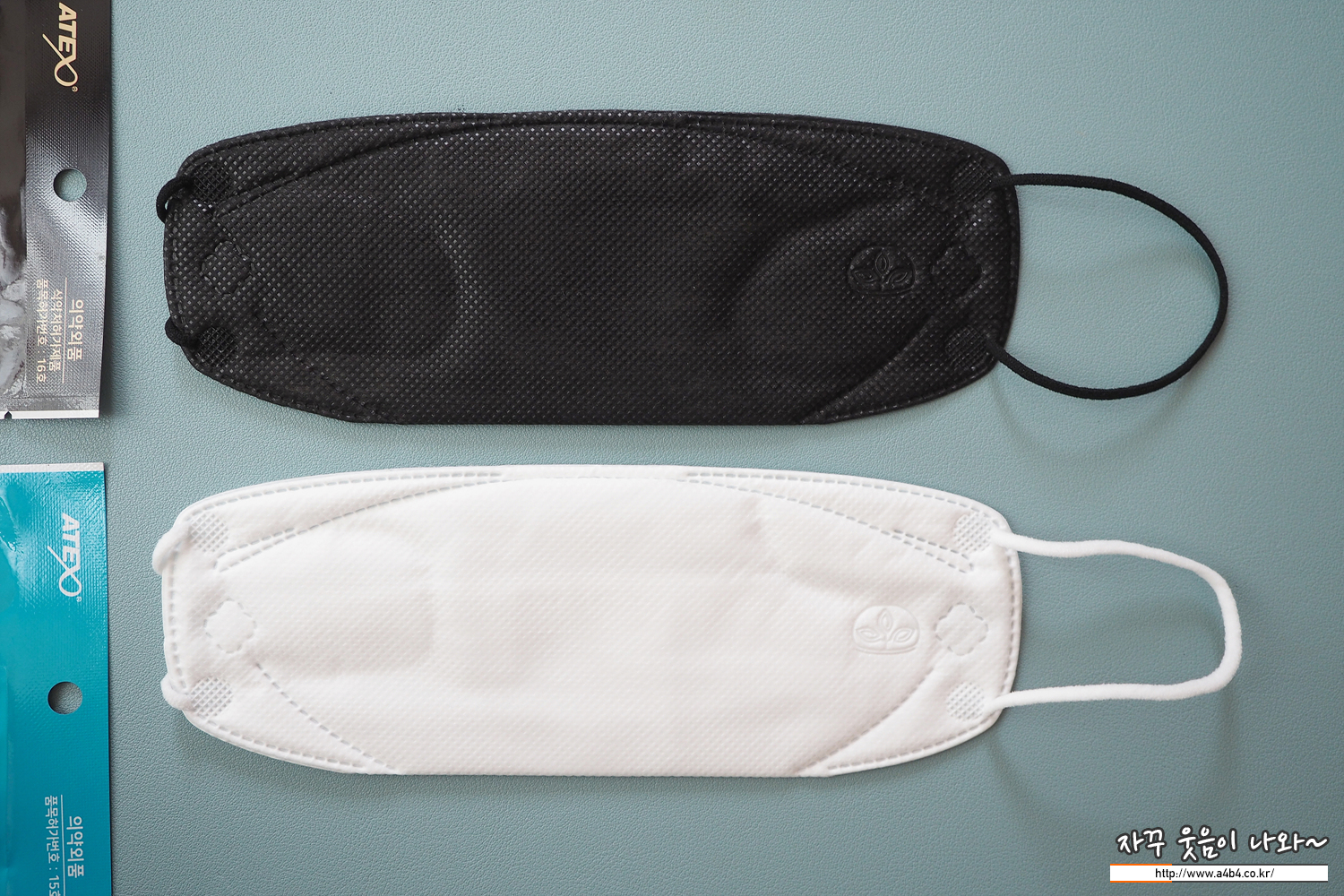 타입은 비슷하지만 마스크 두께와 귀걸이끈 굵기는 KF80 제품이 더 두껍네요.