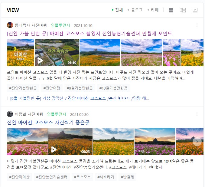 다만 이렇게 인터넷에서 볼 수 있는 마이산 코스모스는 시들어 버렸습니다. 만약 지금 이번 주말에 계획 하셨다면 포기하세요. 아마 남아있는 것은 하나도 없을 것으로 보이네요