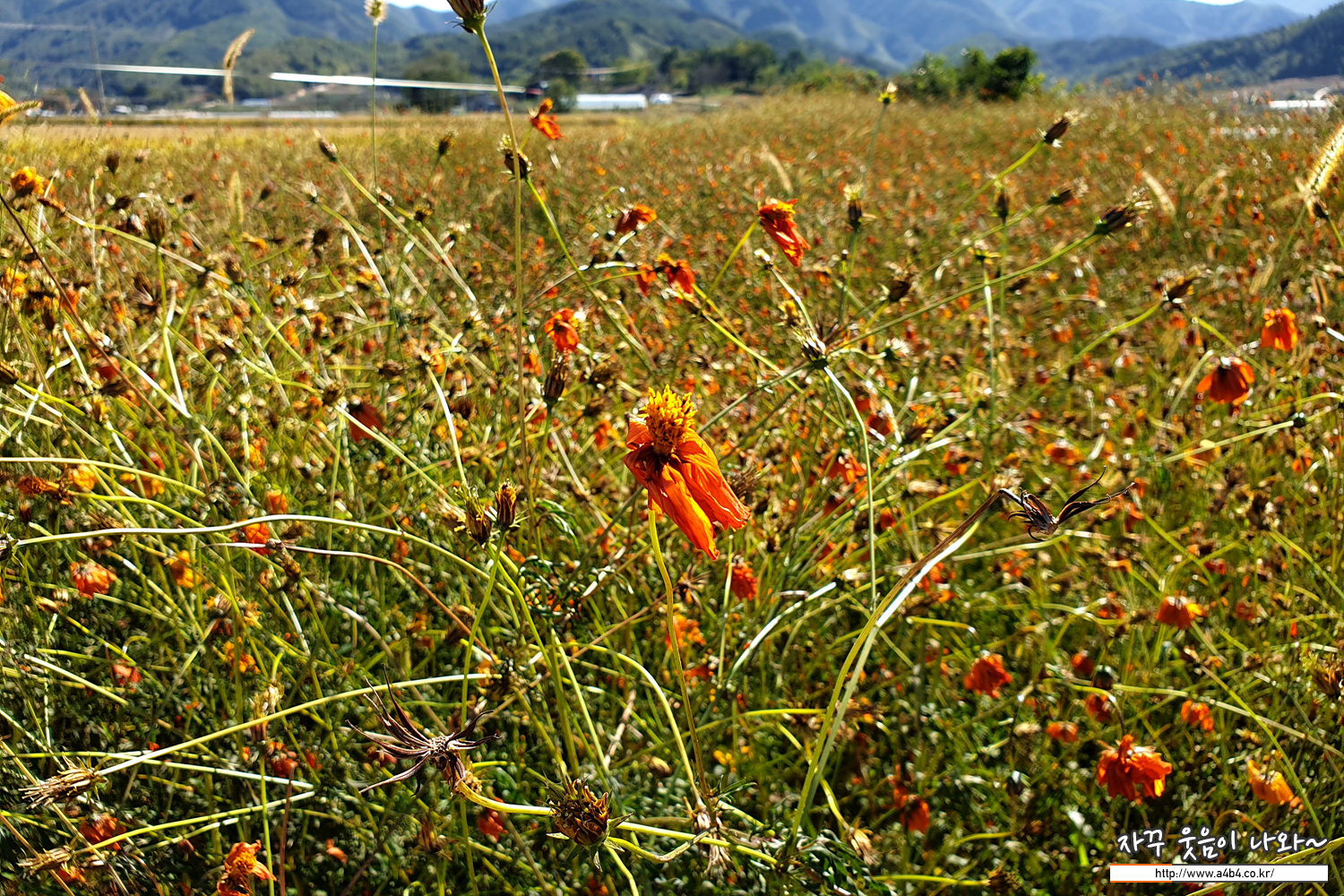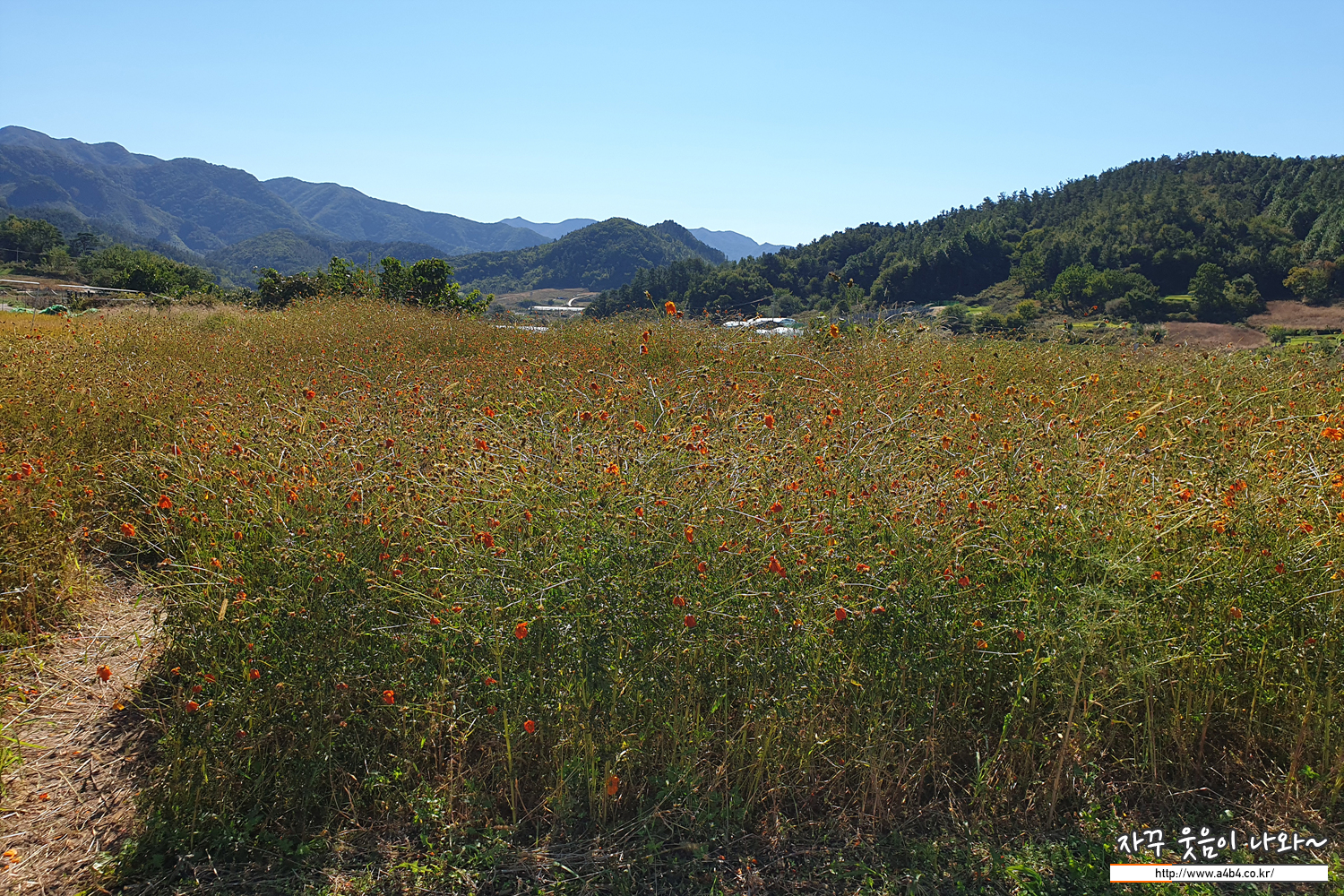 코스모스 꽃이 만개했을때 방문했다면 아마 이런 배경으로 예쁜 코스모스와 함께할 수 있었을 것으로 보이네요.