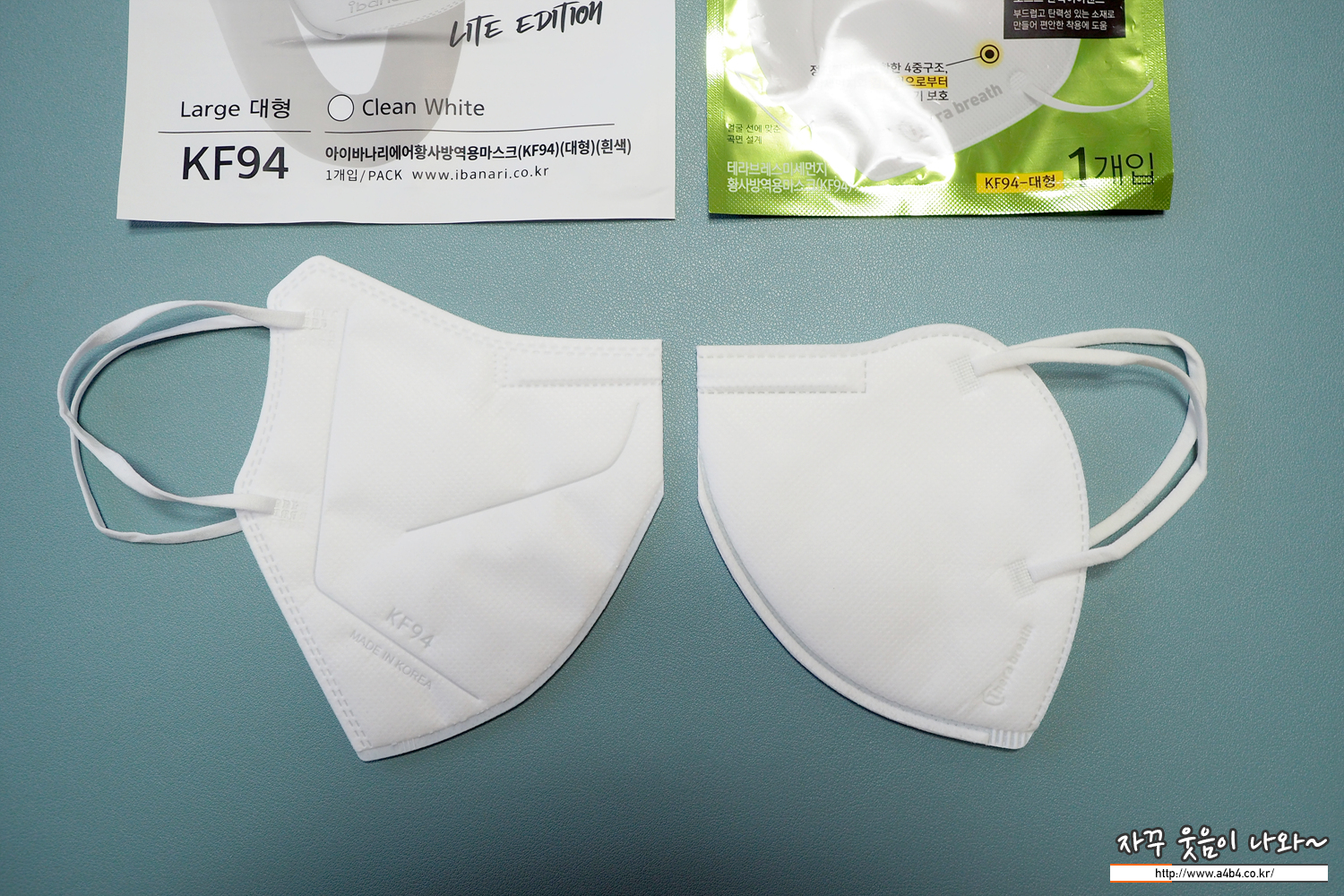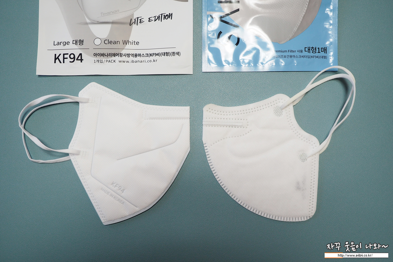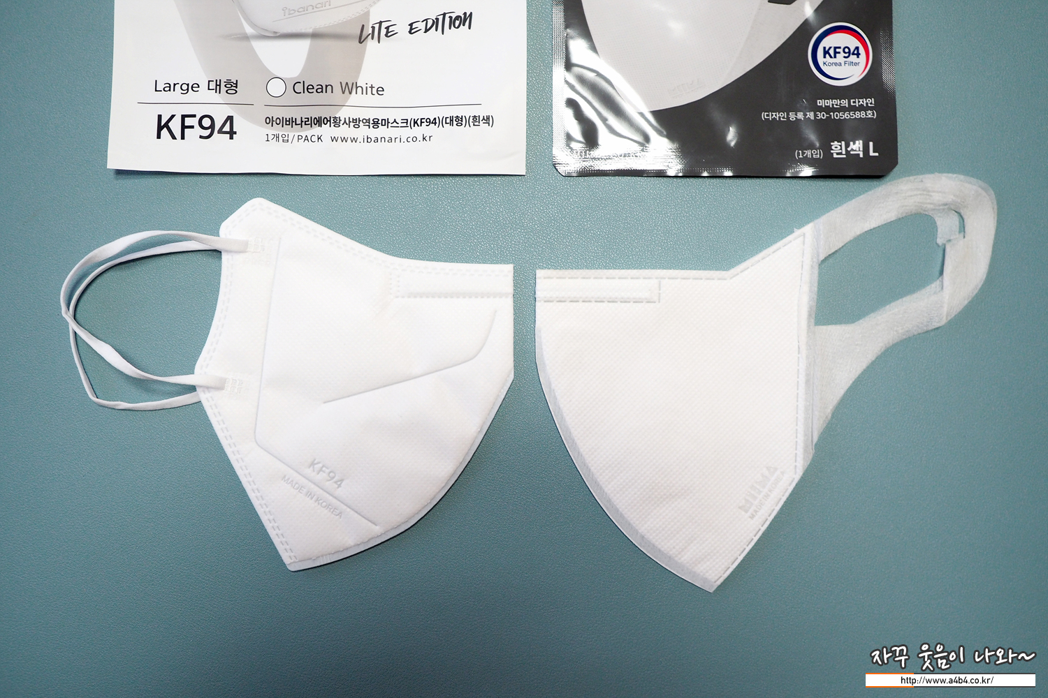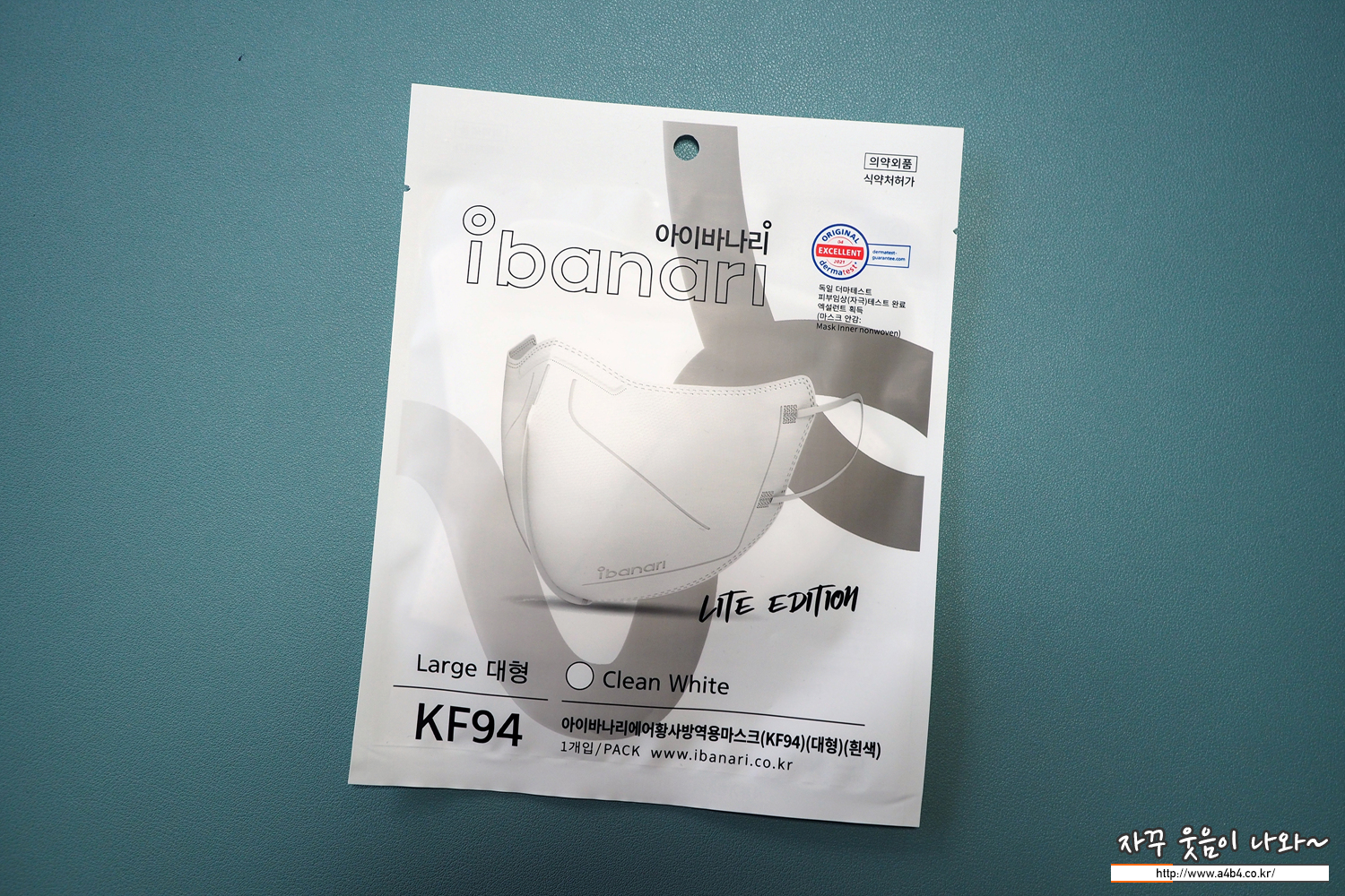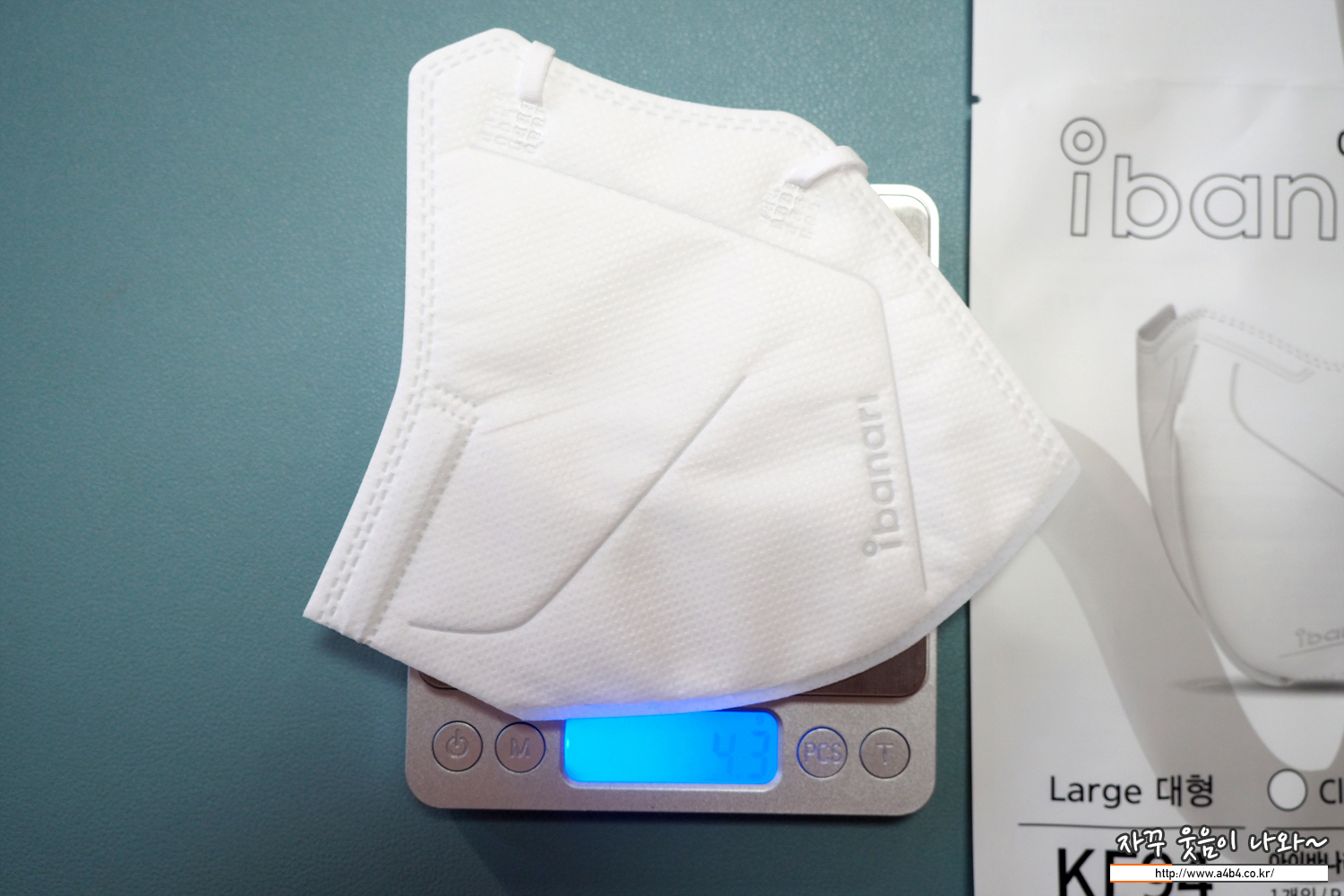 KF94 아이바나리 마스크 대형 중량은 4.3그램으로 상대적으로 조금 가벼운 중량을 보여줍니다.