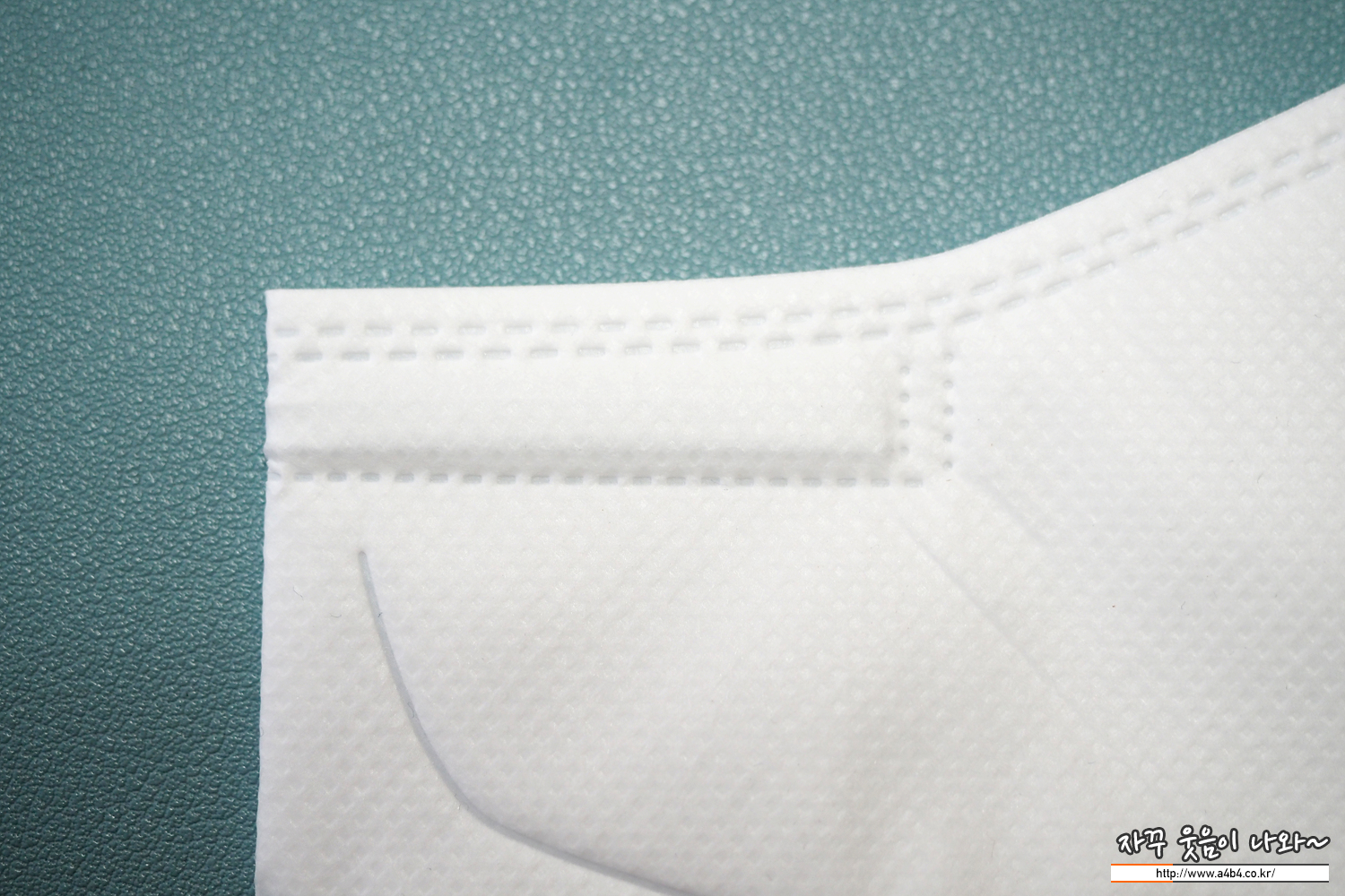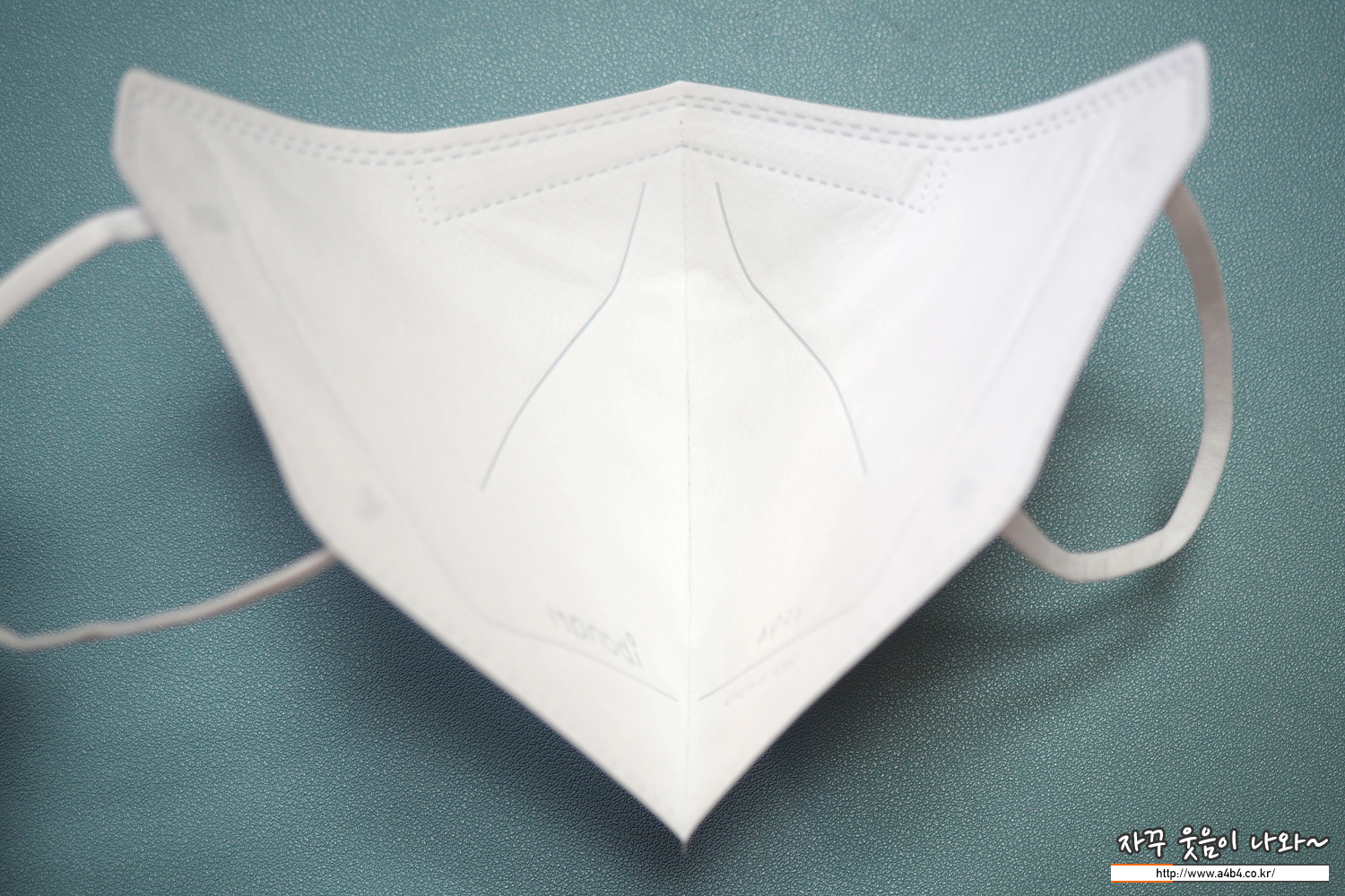 아이바나리 마스크 KF94 외피는 약한 도트처리된 매끈한 감촉의 부직포가 사용되었습니다. 조금 얇은 스타일의 제품으로 얇지만 탄탄한 착용감과 착용핏을 보입니다.