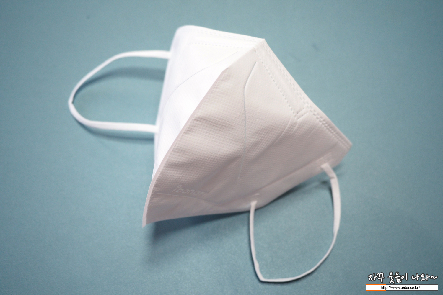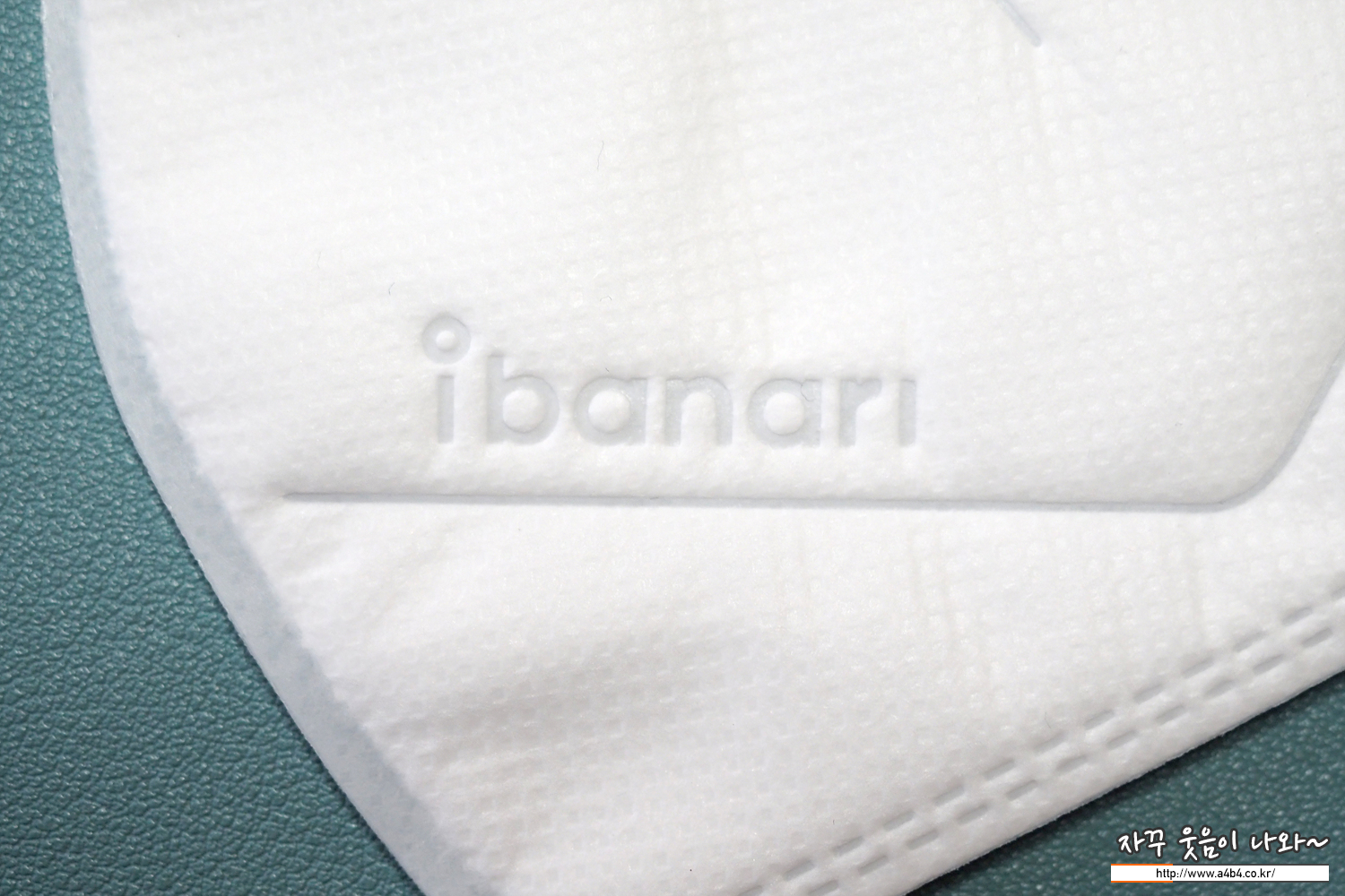 아이바나리 마스크는 일반적인 타입의 부리형 마스크 디자인을 보입니다. 독특한 직선 라인이 특징으로 마스크에는 영문 제품명인 ibanari 가 음각되어 있습니다. 상대적으로 부직포 면적이 상당히 넓어 보입니다.