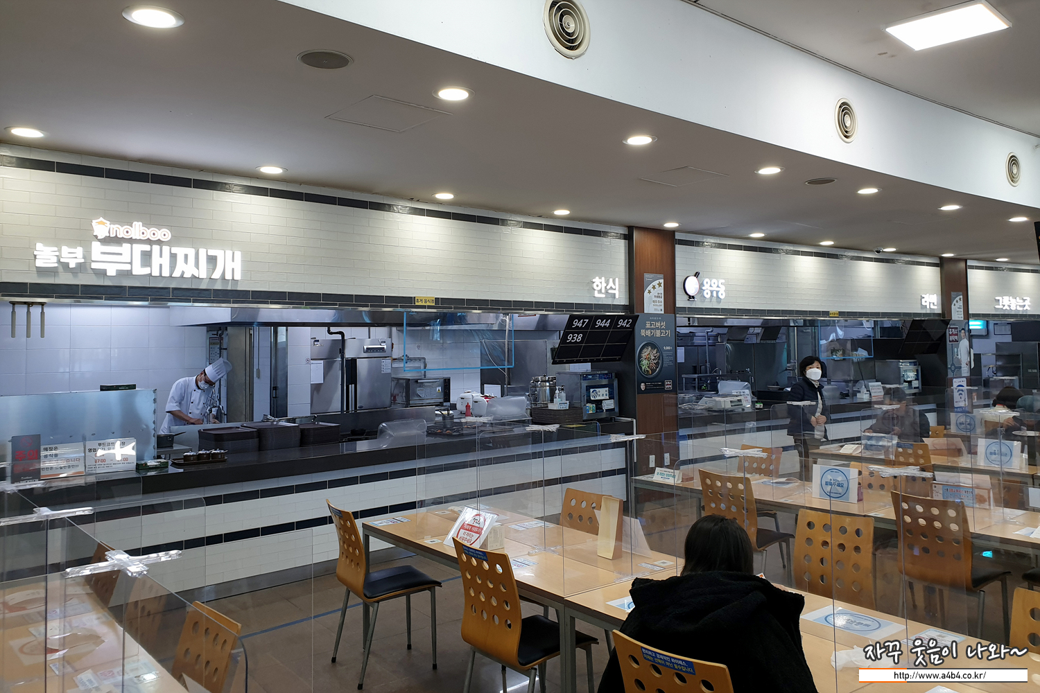 푸드코트는 놀부부대찌개, 한식, 용우동, 라면 코너로 구성되어 있습니다. 안쪽에 뚜레쥬르 제과정이 위치해 있지만 서울에서 볼 수 있는 규모를 생각하지는 마세요.