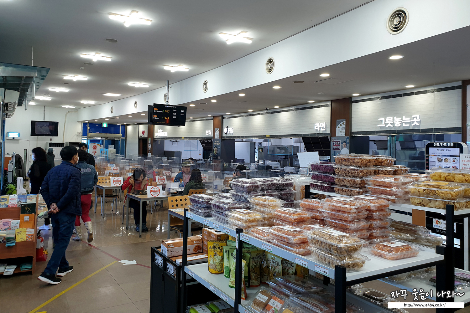 간단한 먹거리와 4개의 푸드코트, 그리고 편의점으로 구성되어 있습니다. 아래 사진에 보이는 공간이 푸드코트 전부.
