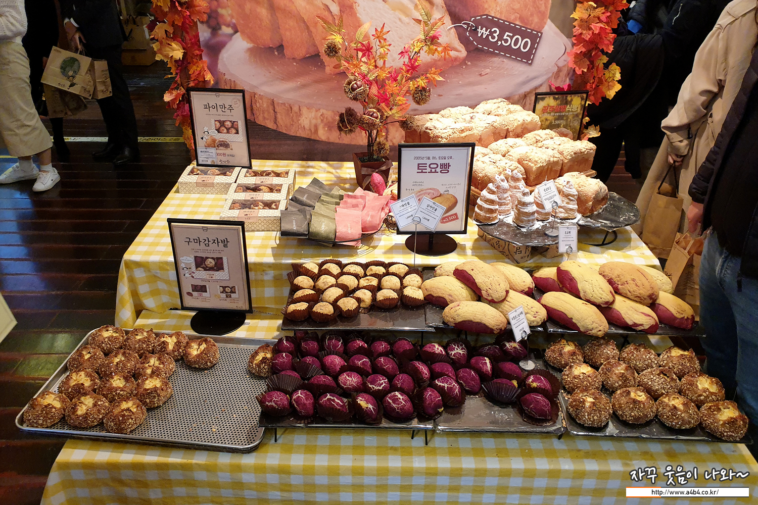 입구에 진열되어 있는 밤과 고구마, 감자를 이용한 빵들...