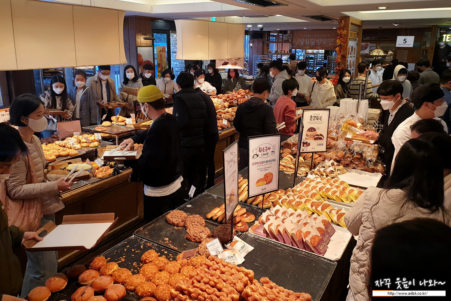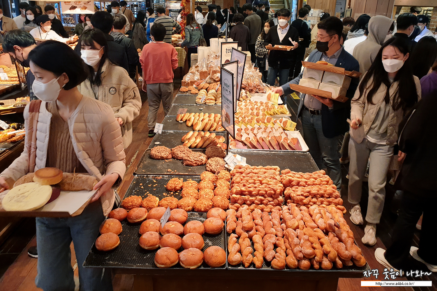 방열확인과 QR로 출입명부 작성 후 입장합니다. 주말이어서 그런지 문 밖에까지 줄이 길게 늘어섰네요. 코로나19 상황인데 사회적 거리두기도 없고, 조금 불안하네요. 빵만 사고 바로 나왔다는...