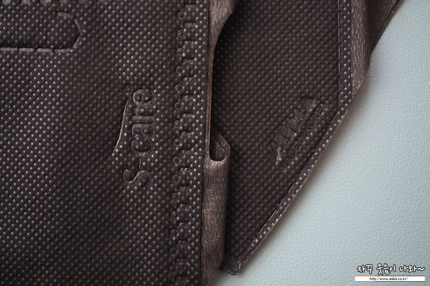 KF94 에스케어 페이스핏 마스크 블랙 대형은 패턴처리된 매끄러운 촉감의 부직푸가 사용 되었습니다. 4중필터 구조로 마스크 두께는 일반적인 타입으로 조금 하드한 착용감을 보입니다.