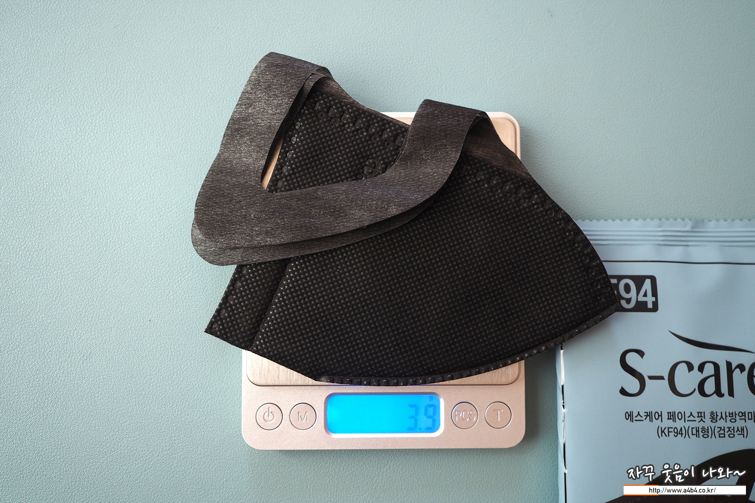 KF94 에스케어 페이스핏 마스크 대형 블랙컬러 무게는 3.9g으로 일반 타사 대형마스크에 비해 가벼운 타입의 제품입니다.