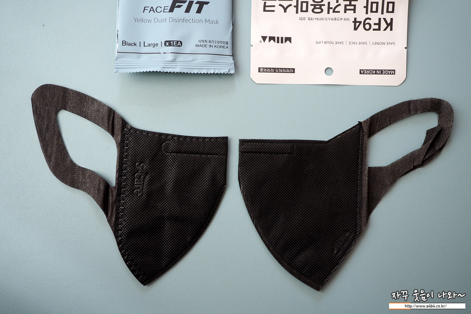 귀 안아픈 '미마 마스크 kf94 대형 블랙' 색감 및 질감 비교