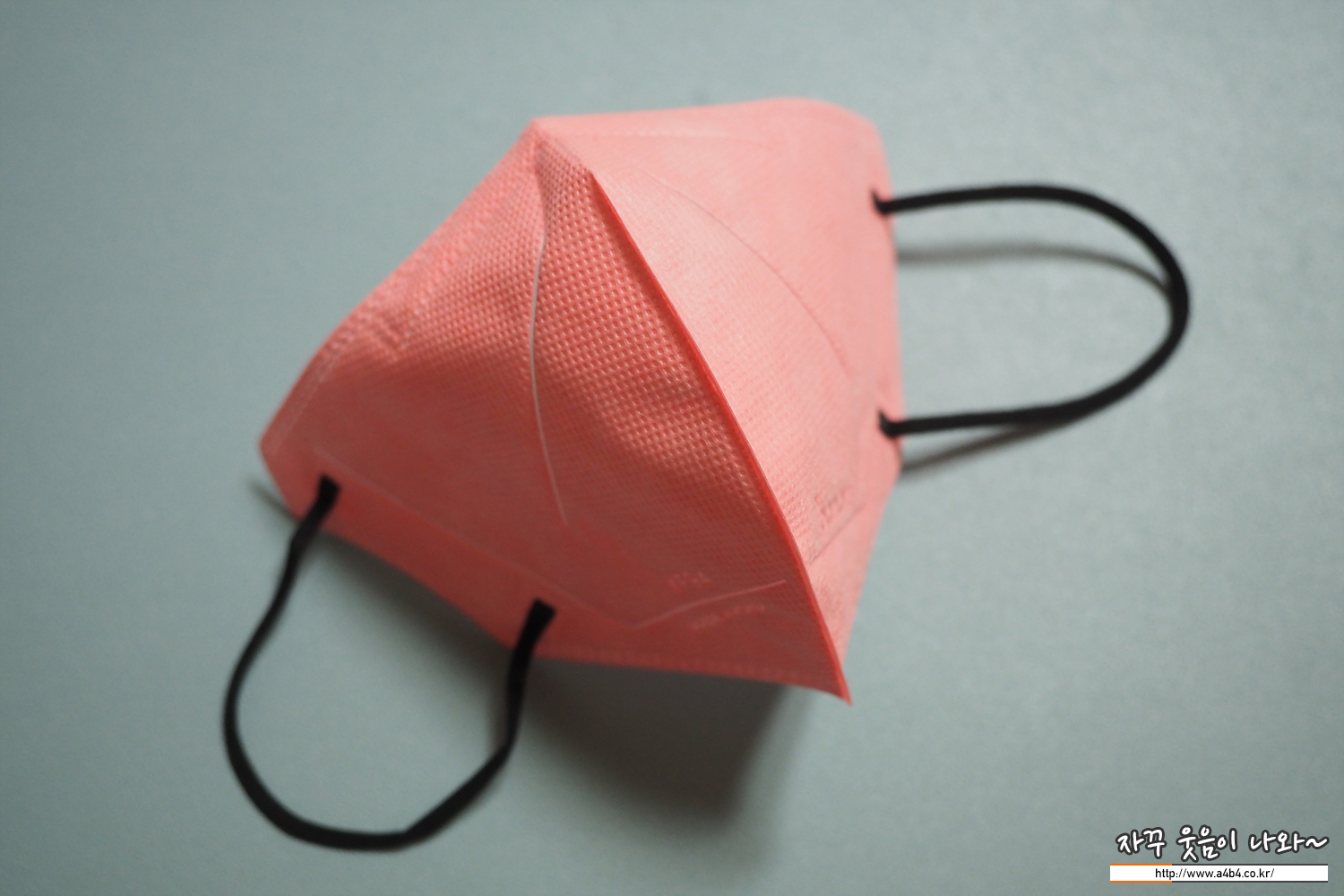 마스크 디자인은 세로 접이식 새부리형 마스크 타입의 제품입니다. 다만 타사 제품에 비해 부직포로 처리된 부분이 상당히 넓은 면적을 보여주는 제품입니다.