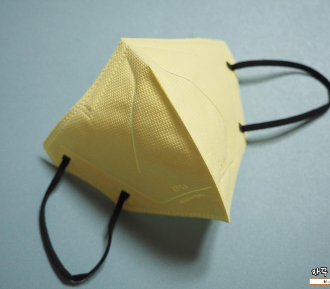 전반적으로 반유광의 차분한 노란색 발색을 보여주는 KF94 아이바나리 컬러마스크 입니다.