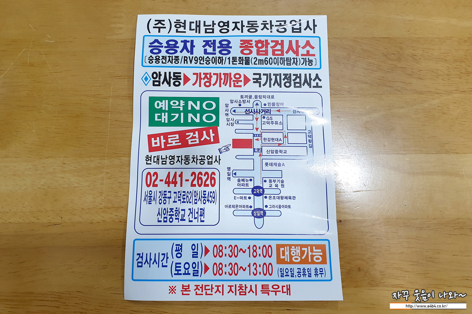이번에는 자동차검사 대형검사장을 이용하기로 합니다. 강동구 암사동에 위치한 '남영자동차검사소'