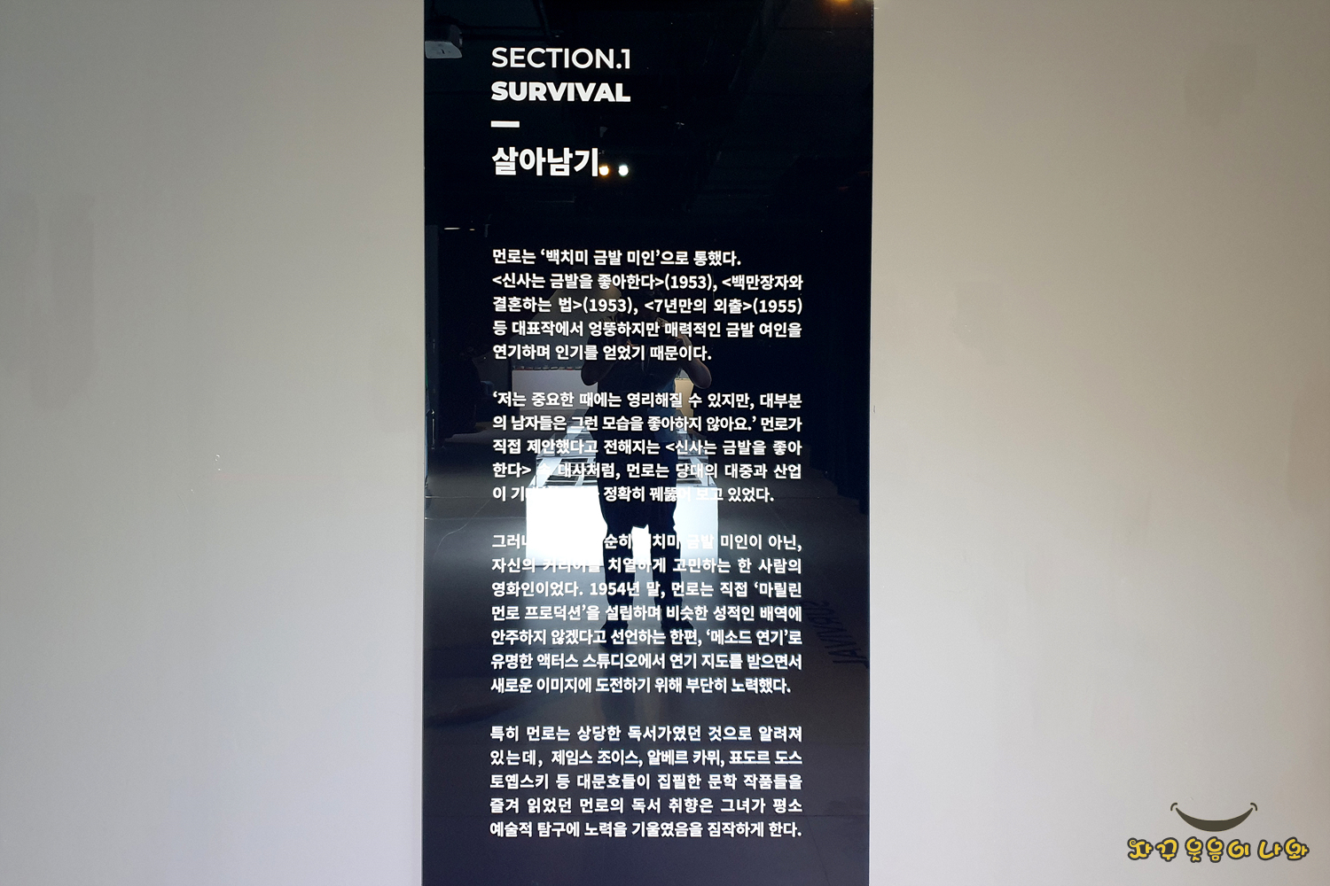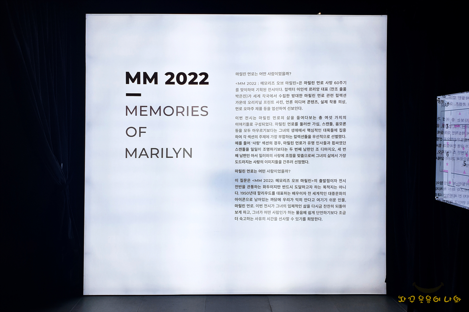 제목과 같이 마릴린 먼로 사망 80주기를 추념하면서 기획된 전시회입니다. 주로 그녀 중심의 사진과 잡지 등이 전시되어 있으며, 이 외에도 영상과 소품들을 만날 수 있습니다. 총 6개의 섹션으로 구성된 전시공간