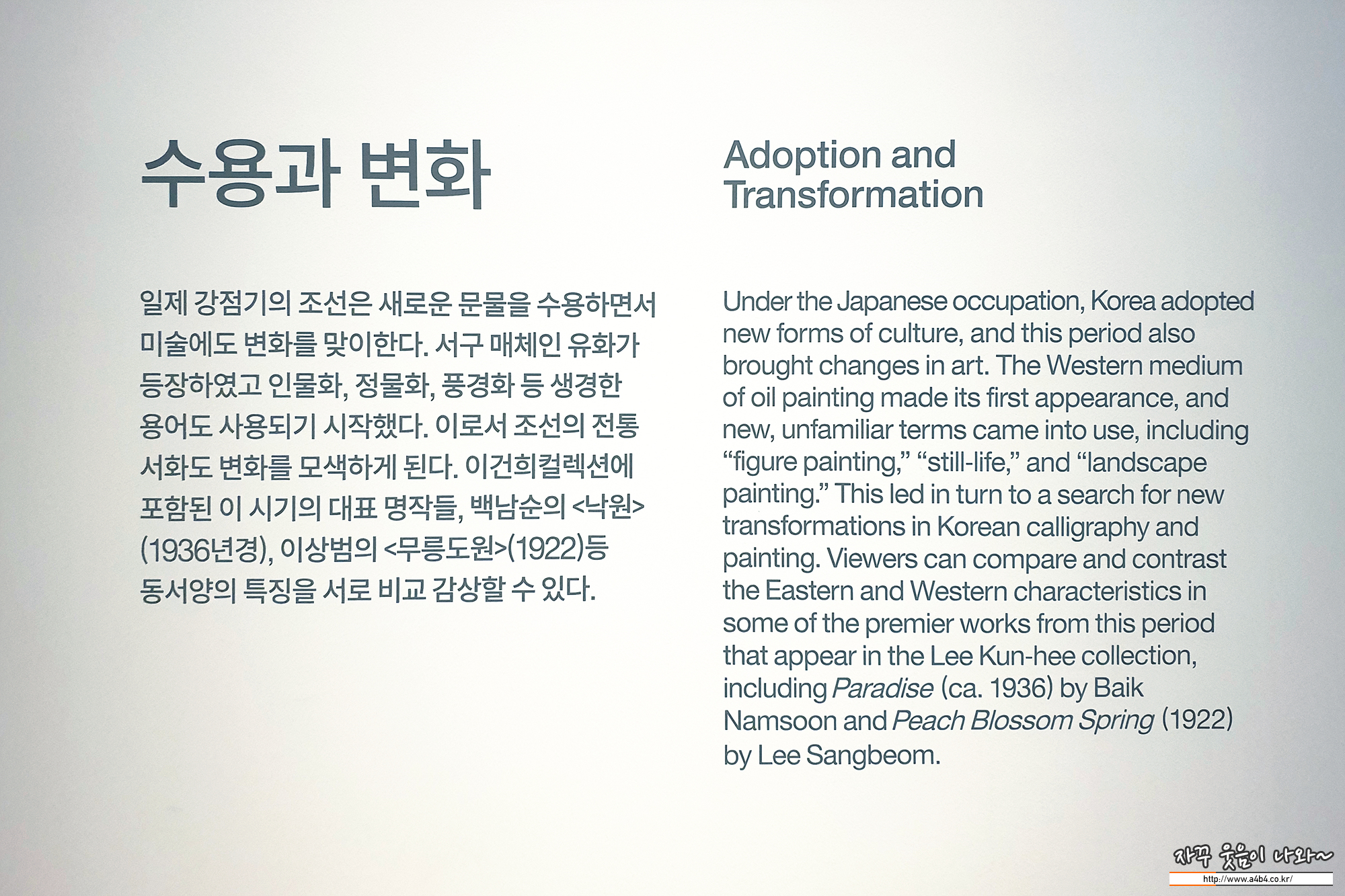 20세기 초 서양문물이 들어오고 전통 동양화와 서양화 기번이 혼재된 족특한 한국만의 작품들이 탄생했던 시기의 작품들이 전시되어 있습니다.