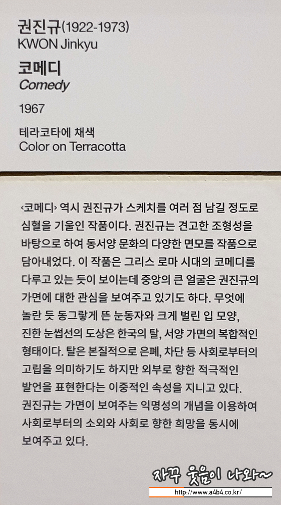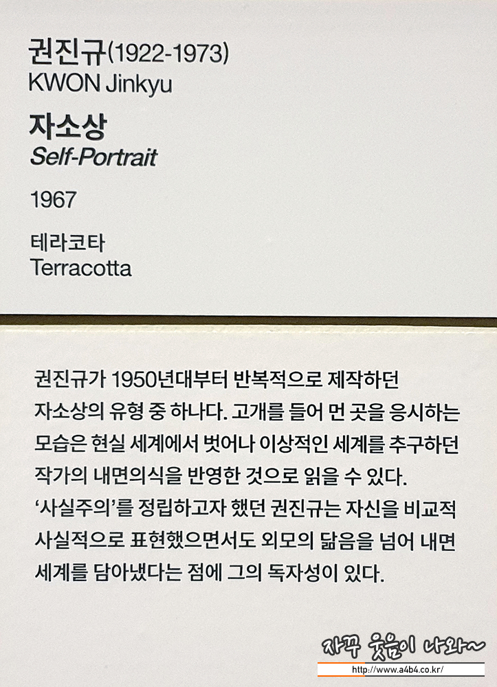 학생시절 조소 양식중 하나인 테라코타 기법의 대표작품으로 나왔던 권진규의 자소상. 느낌이 좋은 작픔...